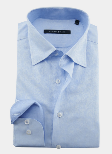 Experience timeless style with the Spicer paisley light blue shirt. Its blue spread collar and accented cuffs add a touch of sophistication, while the white buttons provide a clean finish. Elevate your wardrobe with this versatile and elegant piece.