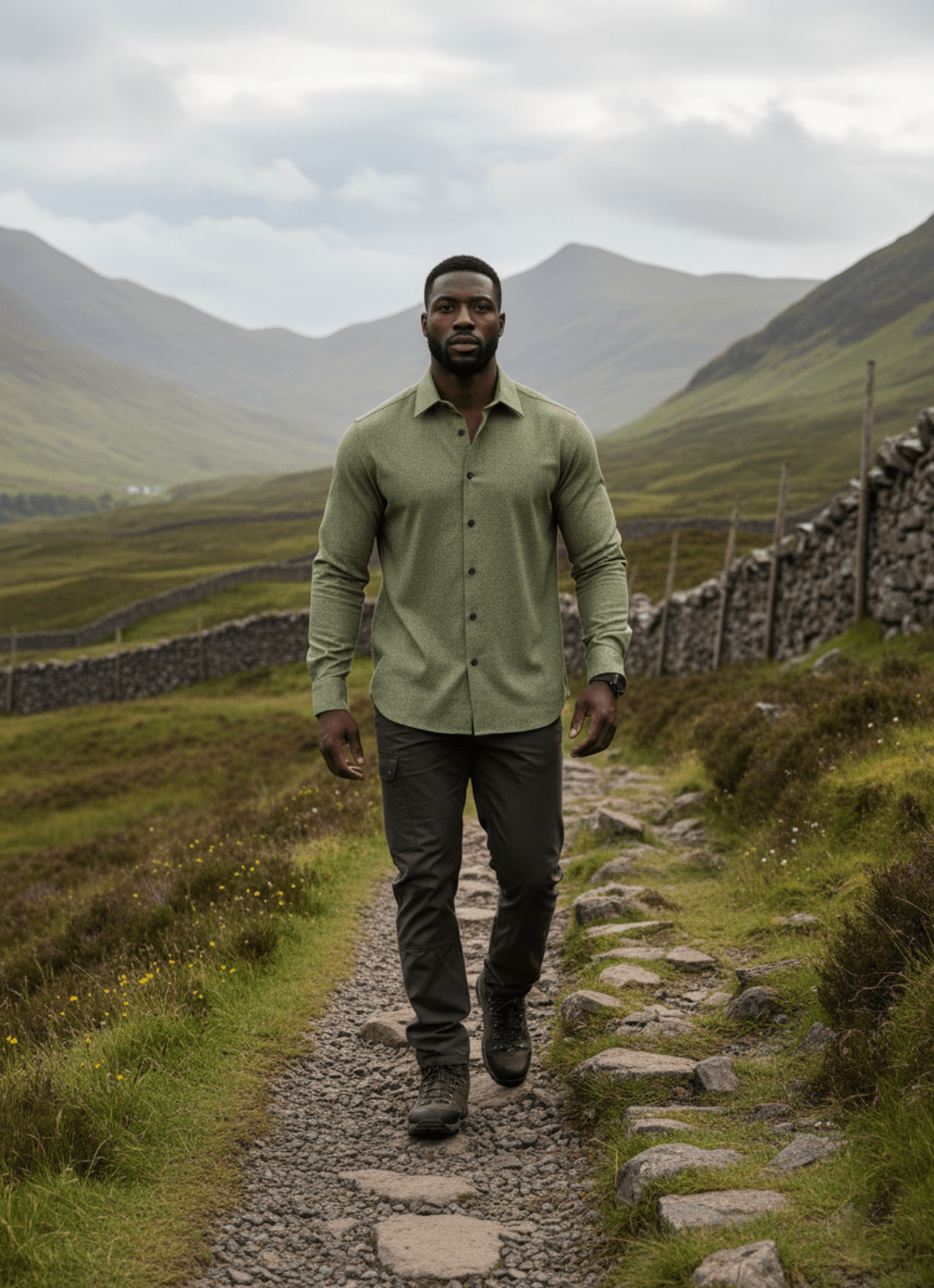 Crafted from soft, stretchy green fabric, the Clontarf long sleeve shirt delivers refined comfort without compromising on style. Its structured button-up collar and wrinkle-resistant finish ensure you maintain a polished appearance throughout the day, making it an essential addition to any professional wardrobe.