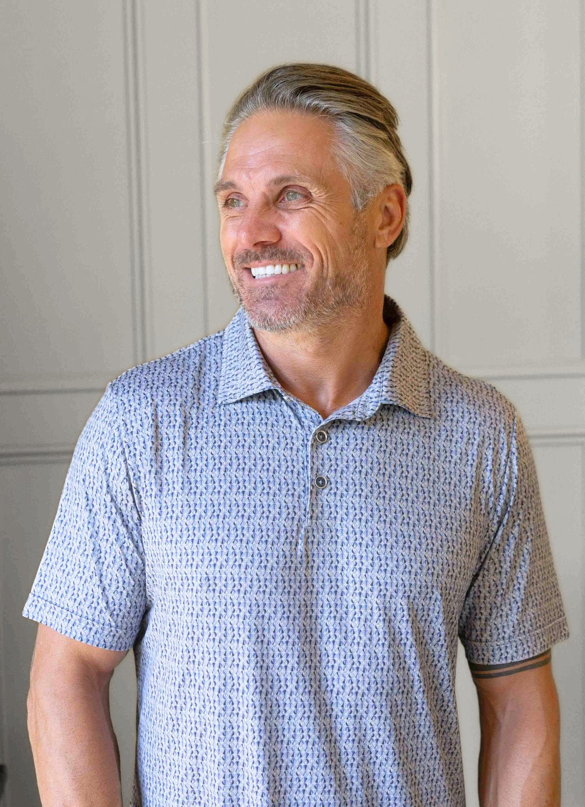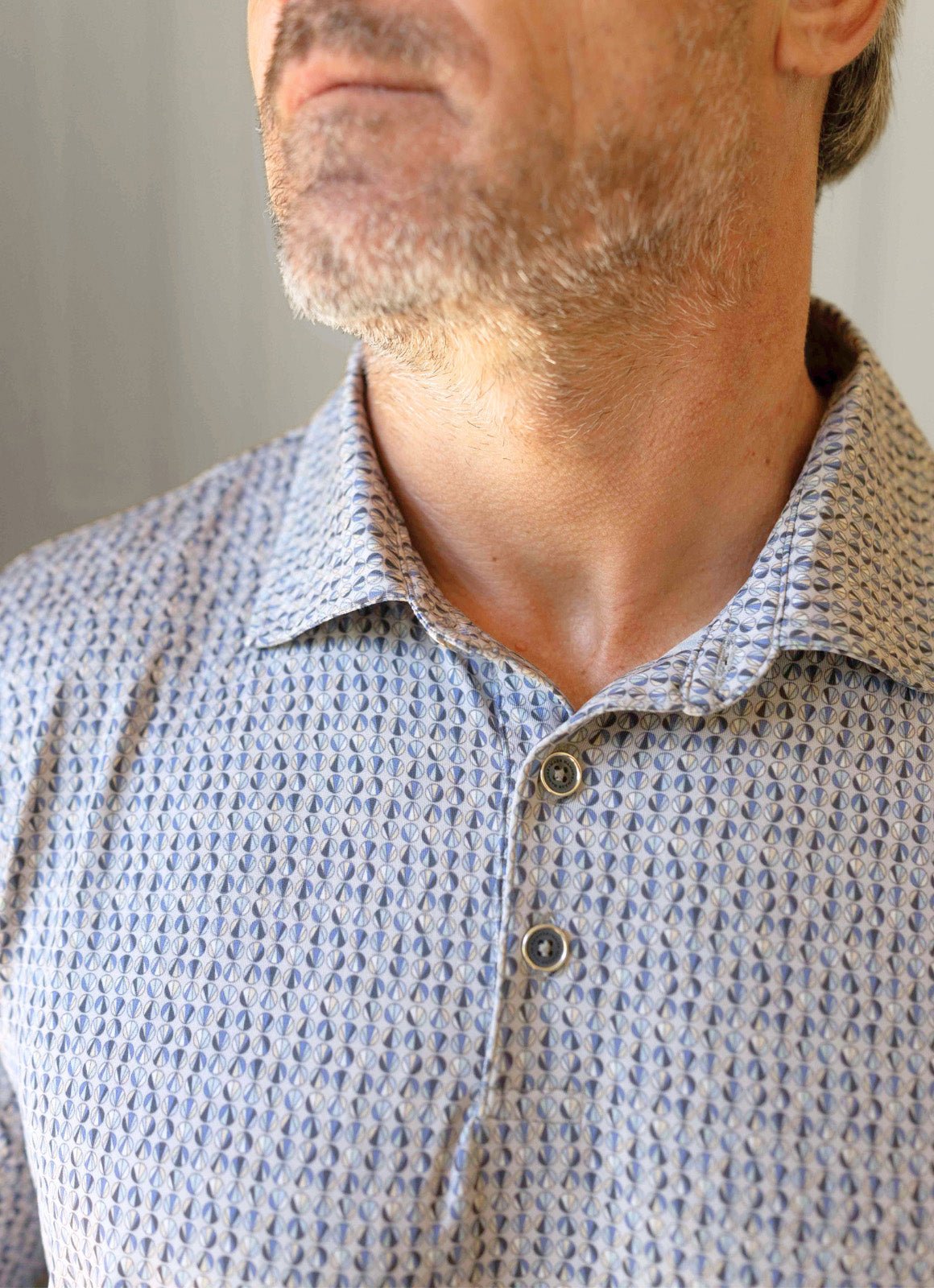 Refresh your wardrobe with the Cartwright Polo from the Performance Stretch Collection, featuring a unique circle pattern for added visual interest. Made with luxuriously soft, smooth fabric, it combines comfort with a stylish edge. The metal-rimmed buttons provide a refined accent, ensuring you look polished. This versatile polo keeps you cool and confident at any event throughout your day.
