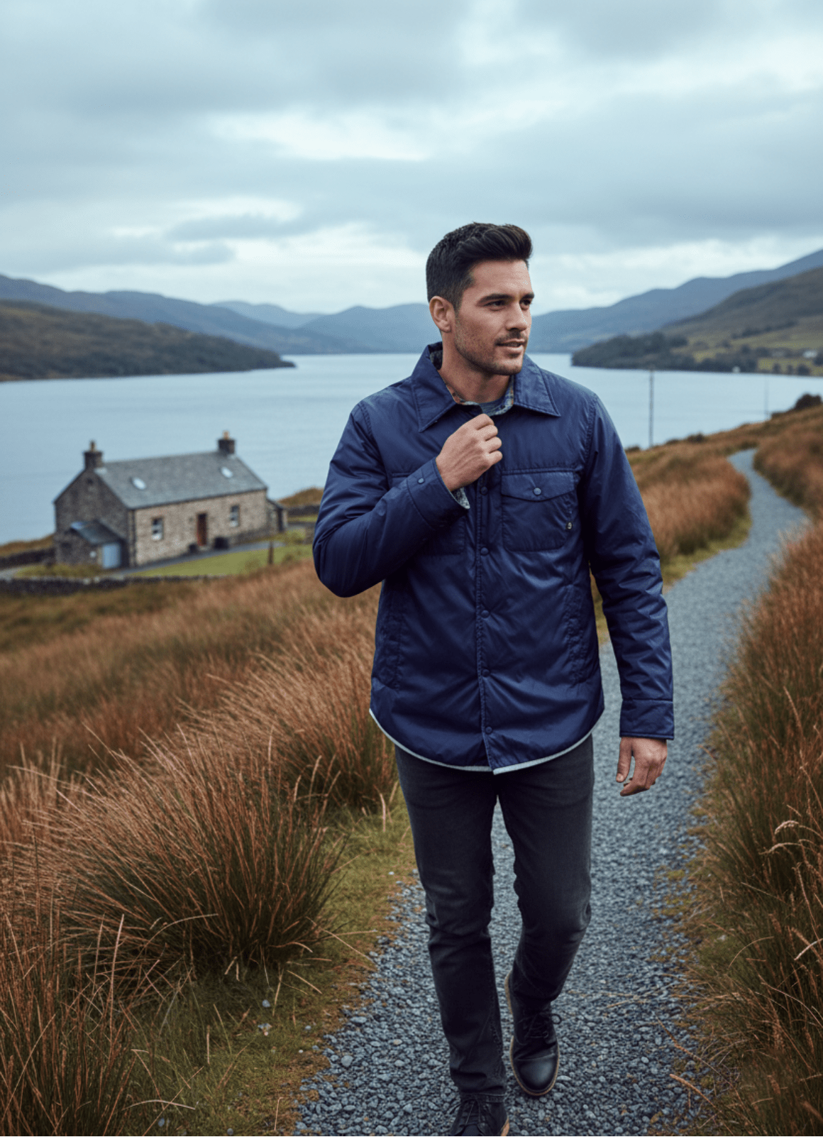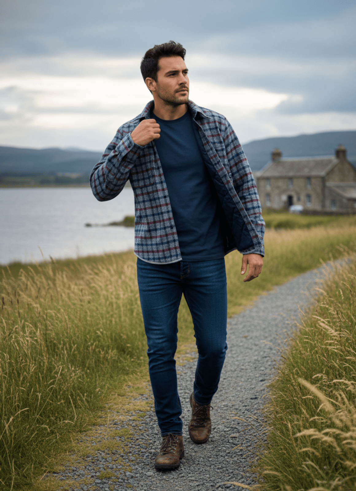 The Luverne Reversible Jacket delivers refined versatility with its dual-faced design, pairing a knit plaid inner layer with a smooth, sleek navy outer shell for a polished finish. Thoughtfully designed with double front pockets on each side, it offers ample storage while maintaining a clean silhouette. Ideal for layering, this jacket seamlessly elevates any ensemble, transitioning gracefully from relaxed days to more sophisticated occasions.