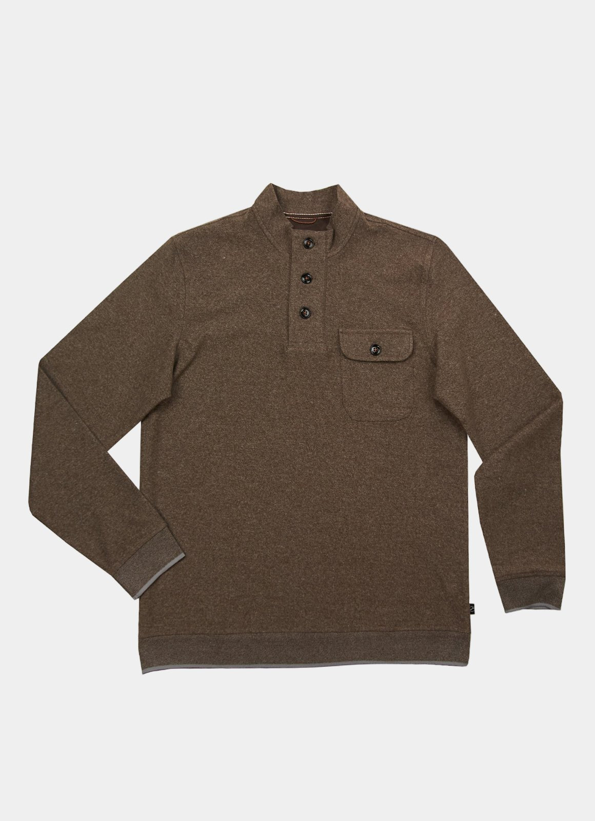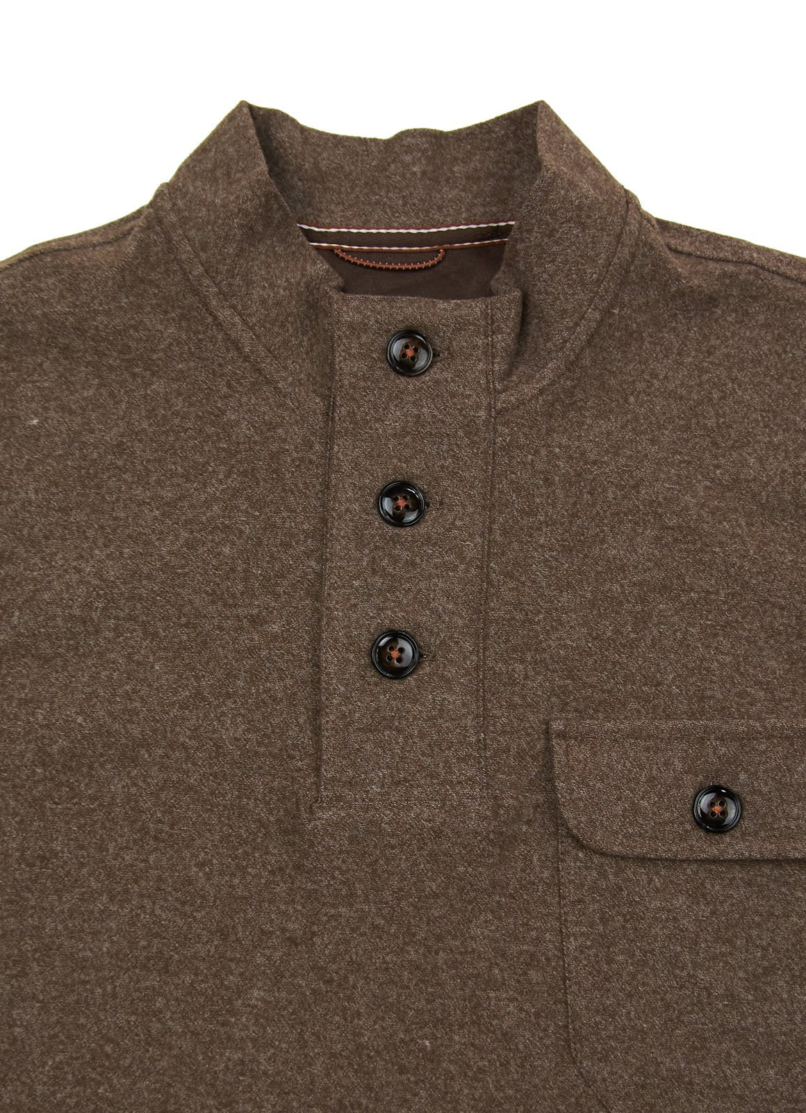The Wabana Pullover provides a comfortable and stylish choice ideal for casual or elevated layering. It includes a button pocket on the left chest, a three-button collar, and understated accent details on the placket. With an elastic waistband and arm cuffs, it delivers a secure, tailored fit.