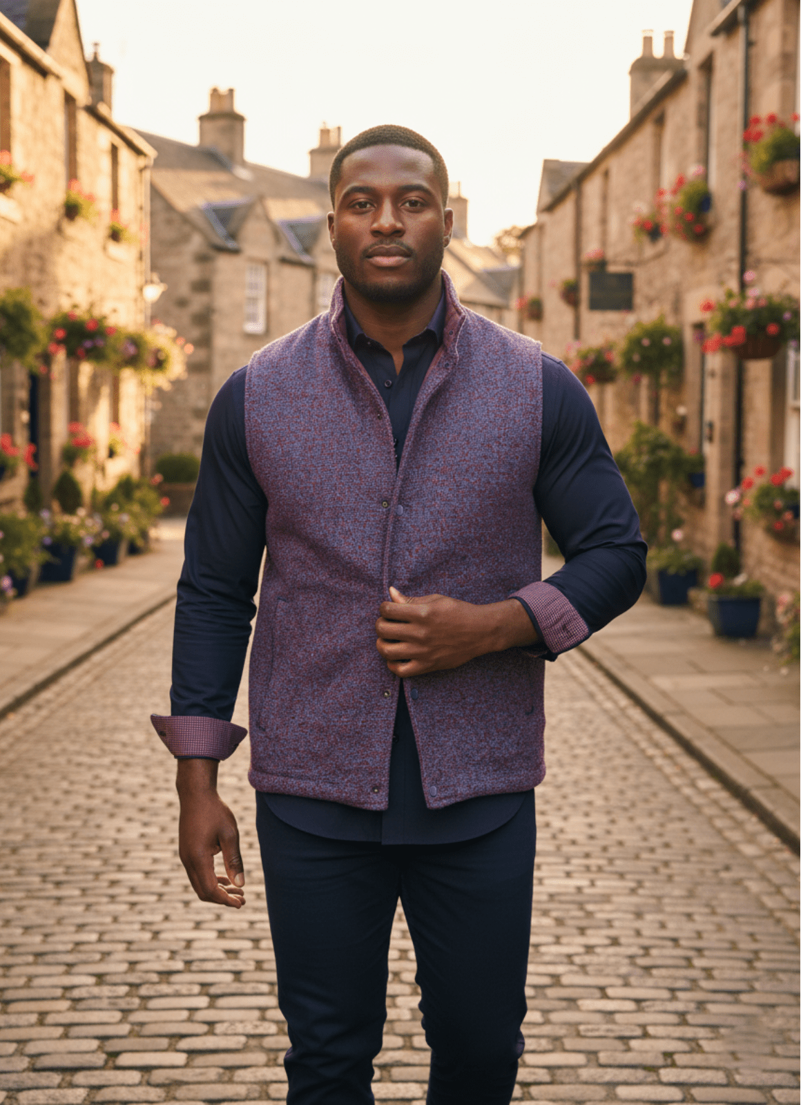 The Mallard Reversible Vest features a rich burgundy exterior with a versatile, reversible interior design. Perfect for layering, it includes zippered pockets to keep your essentials secure and additional interior pockets for convenience. Snap metal buttons ensure a comfortable and secure fit.