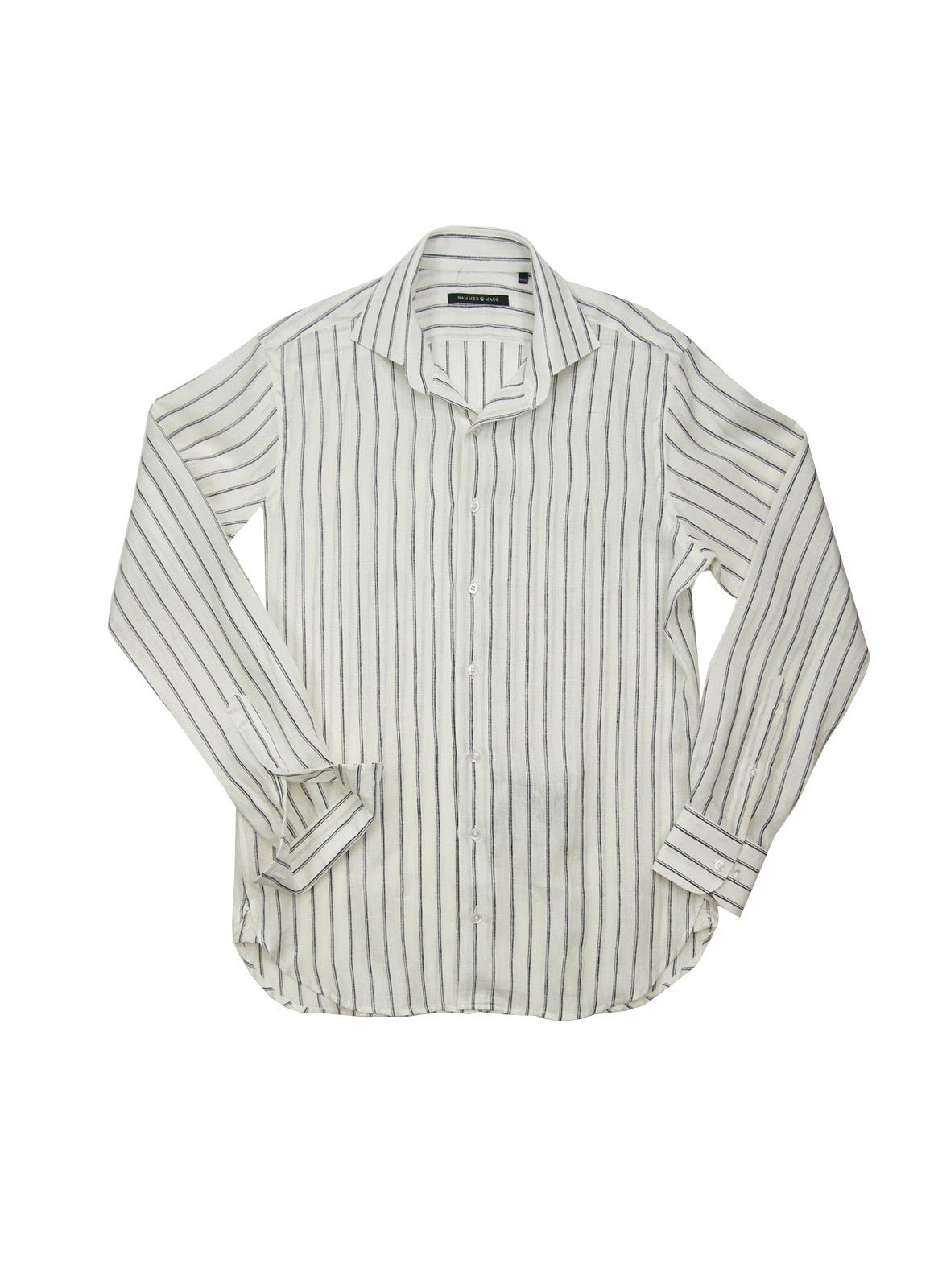 The Danzel shirt offers timeless style with its black and white striped linen fabric. With long sleeves, this shirt is perfect for any season and provides a comfortable and stylish fit. Elevate your wardrobe with this versatile and classic piece.