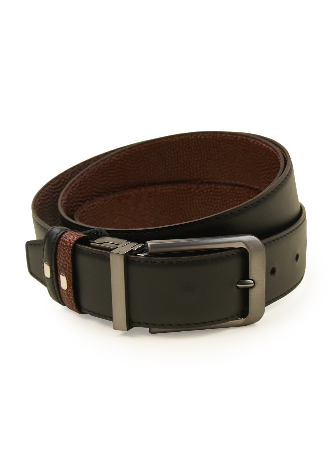 Cognac Pin Dot/Black Reversible Belt