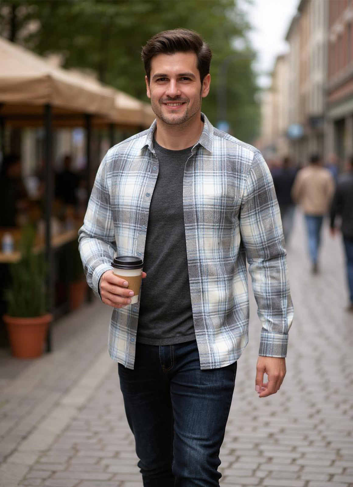 The Graven quilted shacket is a stylish and versatile choice, combining light blue and grey shades with a rich blue interior and distinctive contrast buttons. Its timeless design ensures you stay both comfortable and fashion-forward. Elevate your wardrobe effortlessly with this must-have piece that blends style and function perfectly.