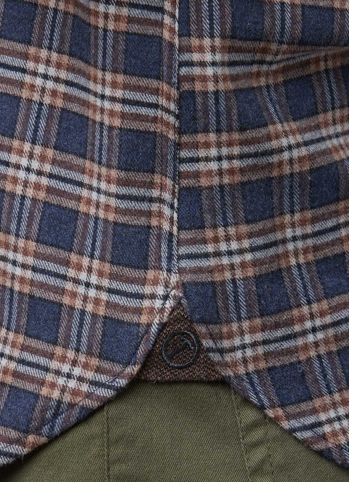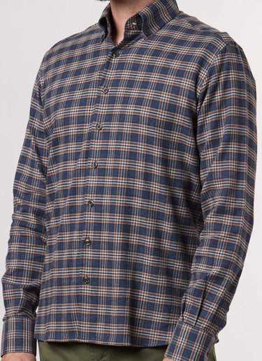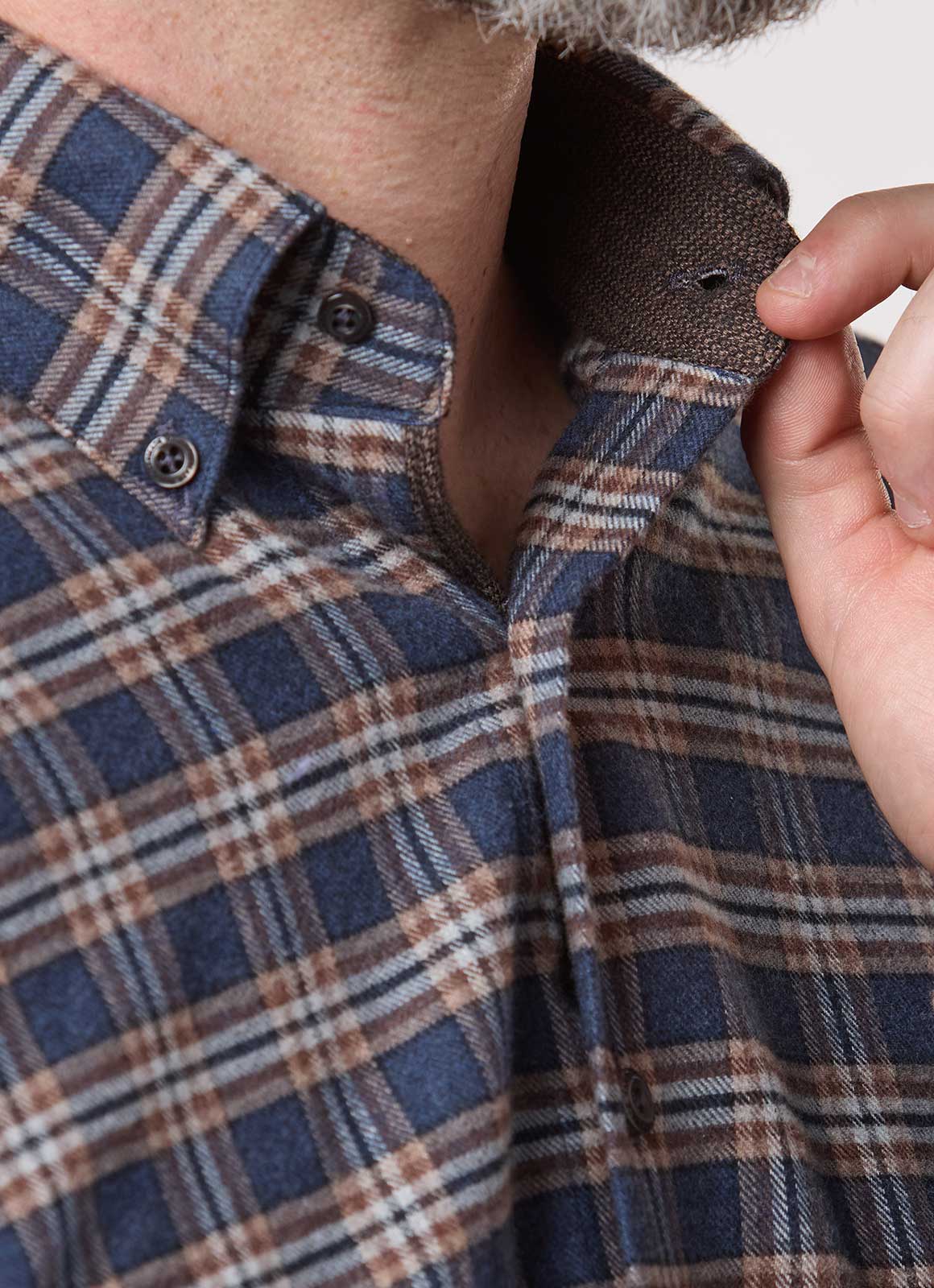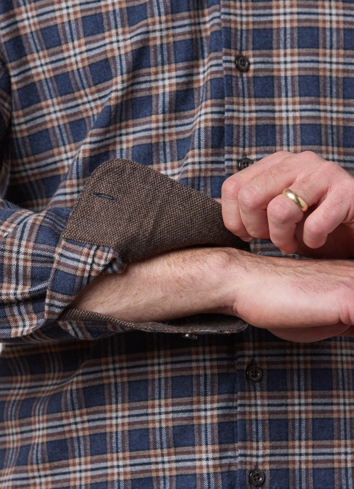Introducing Waseca - the ultimate flannel for those seeking quality and comfort. Crafted with Italian fabric, this navy and brown plaid flannel also features a textured contrast fabric for added style.