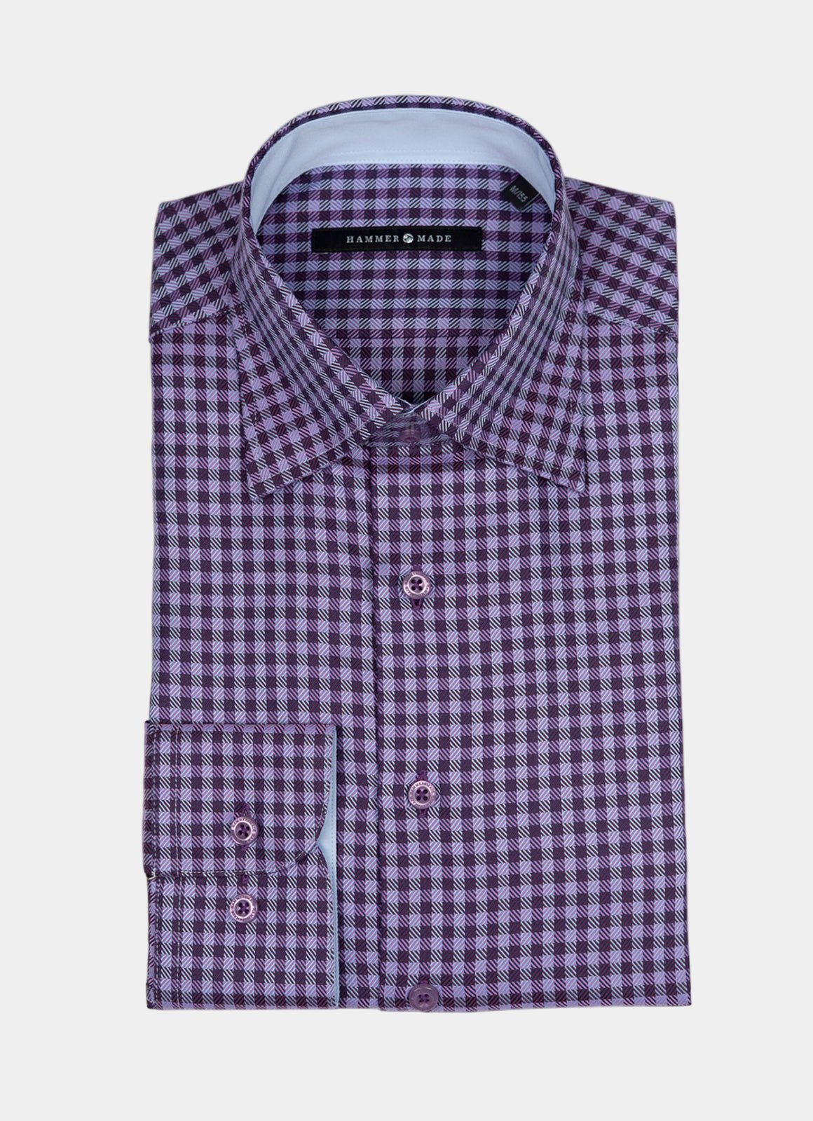Introducing Delano, a premium shirt that exudes sophistication and style. Its purple check pattern is accented with light blue detailing and a subtle sheen, adding a touch of luxury to any outfit. Elevate your wardrobe with Delano.