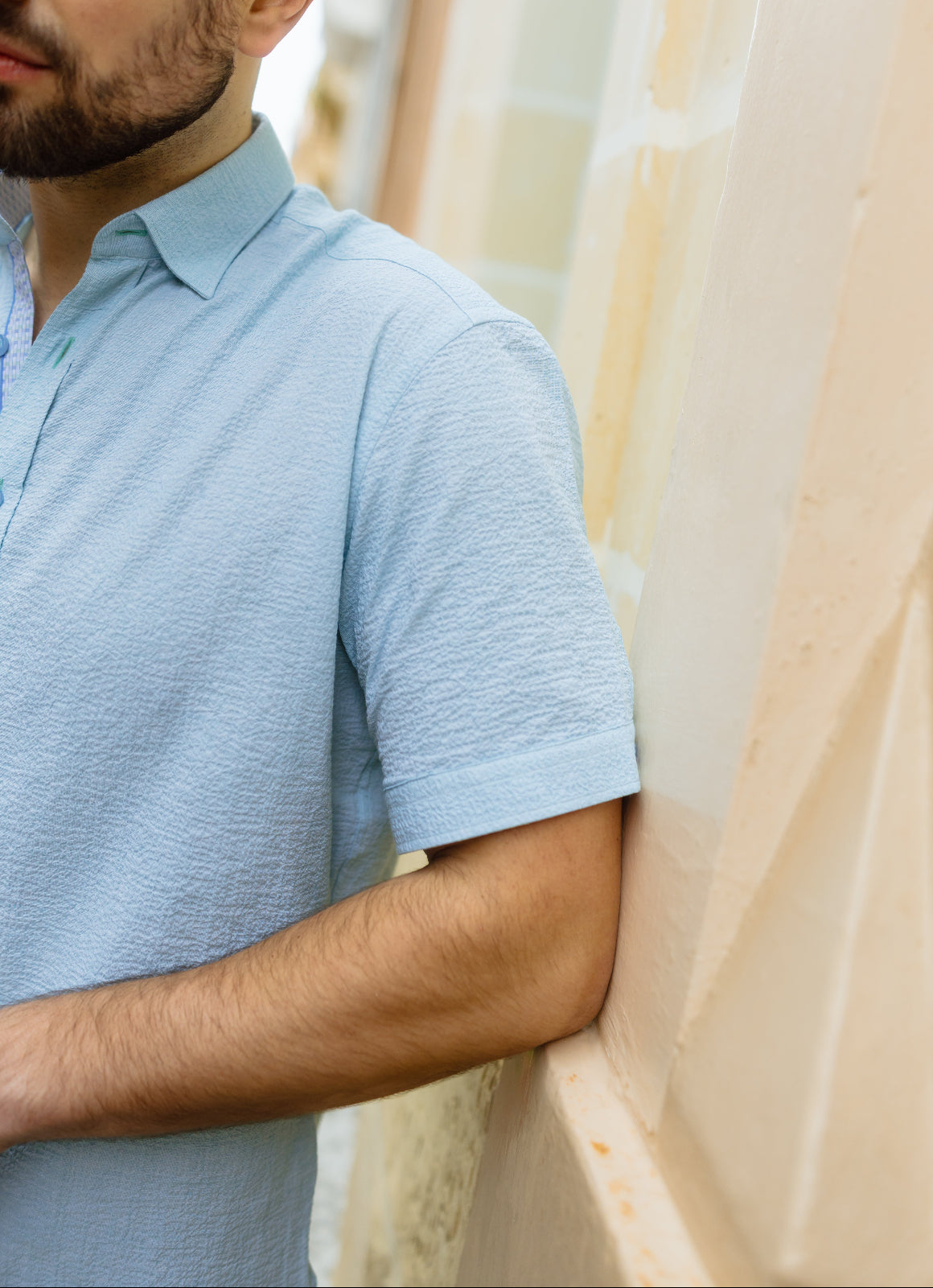 The Birch short-sleeve button-down is designed to support your summer style with ease. Its vibrant blue hue brings a refreshing energy to warm-weather days, while premium European lightweight fabric moves with you for all-day comfort. A thoughtful patterned detail on the inner sleeve cuff adds character, and the gentle stretch ensures you can wear it confidently through whatever your day brings.