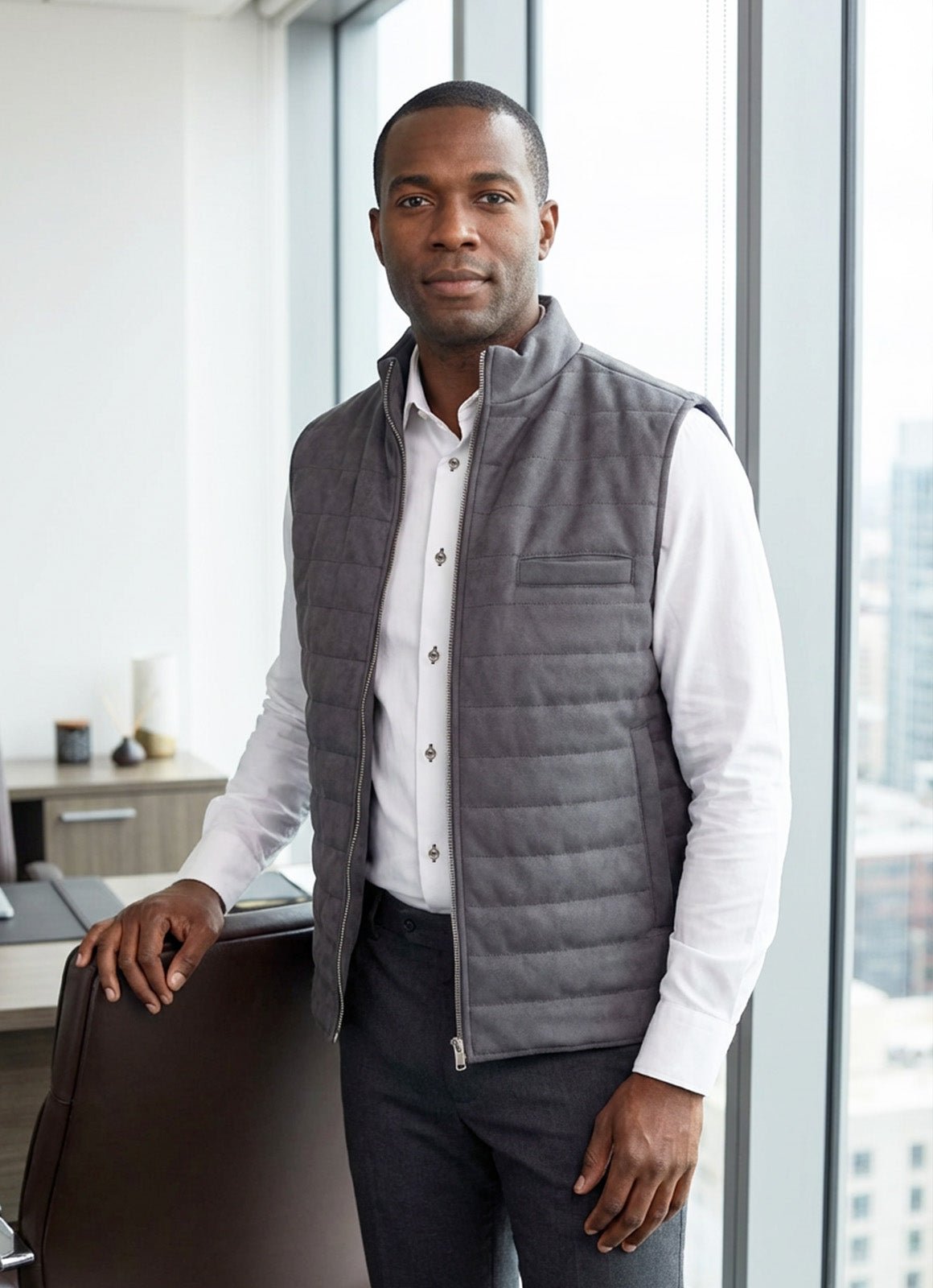 The Grey Briggs Vegan Suede Vest brings European craftsmanship to your seasonal wardrobe, offering a sophisticated layering piece that works beautifully for sophisticated gatherings and everyday elegance. Discover the thoughtful details within—a striking contrasting pattern lines the inside, adding personality and visual interest every time you move.