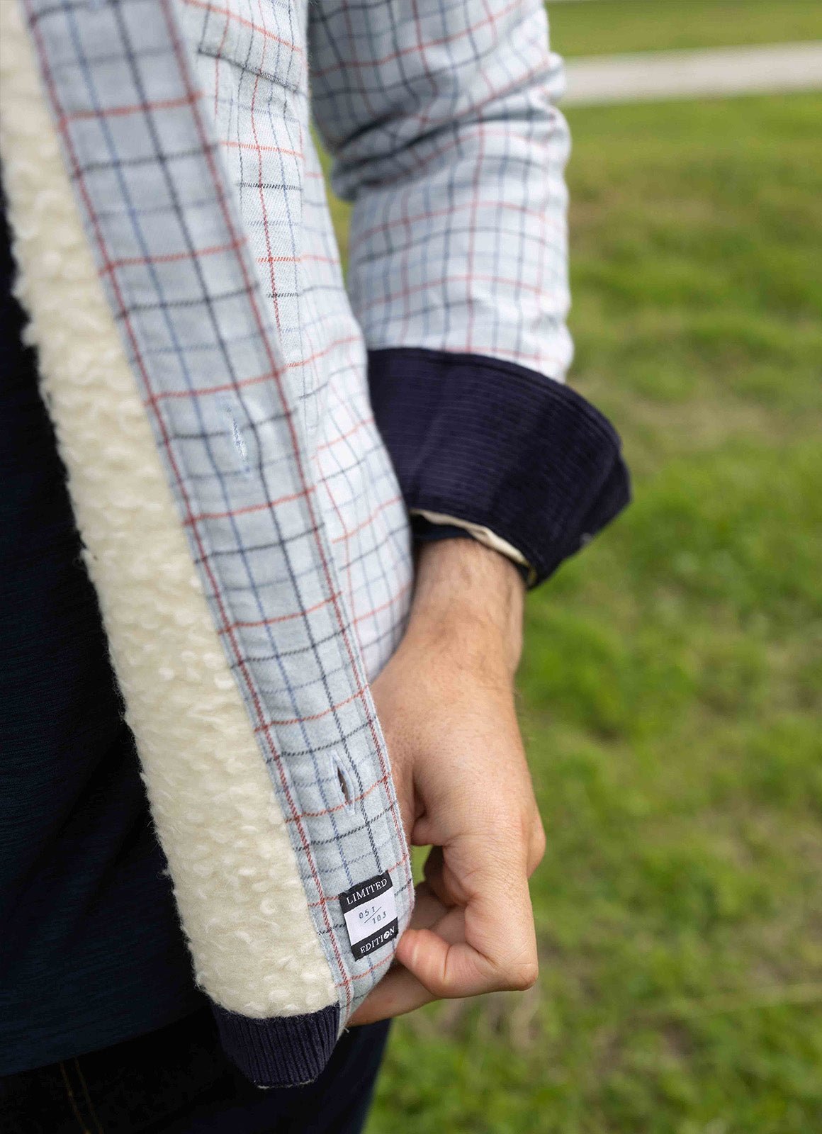 The Morrill Sherpa Lined Jacket pairs a charming light blue plaid exterior with a plush sherpa interior, creating a cozy layer that keeps you warm without weighing you down. Premium crafted and thoughtfully designed, this lightweight jacket is your go-to piece for effortless style and comfort through any season.