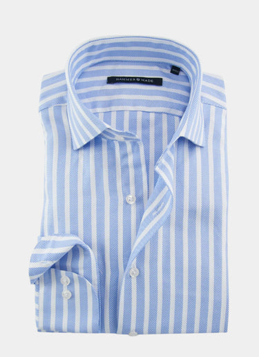 Elevate your wardrobe with Frazee, our blue and white stripe twill button down. Crafted with a sophisticated herringbone pattern, this shirt adds a touch of luxury to any outfit. The timeless blue and white stripe design exudes elegance, making it a must-have for the stylish and exclusive individual.