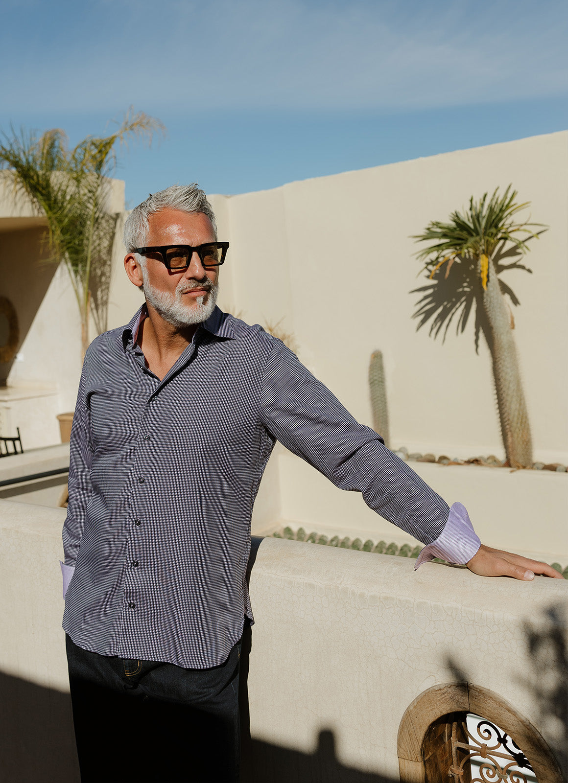 We make our sleeves slightly longer to showcase cuff detail — sleeves can be shortened by a tailor, but not lengthened.