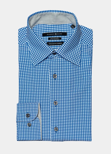 The Rodgers pairs executive polish with unrestricted movement. Its striking royal blue houndstooth elevates any business wardrobe while the Performance Stretch blend adapts to your day—no stiffness, no compromise, this shirt resists wrinkles naturally and feels luxuriously soft against skin. Wear it through presentations, client dinners, and weekend plans without a second thought. European construction meets sustainable innovation in a piece designed for professionals who refuse to choose between style and comfort.