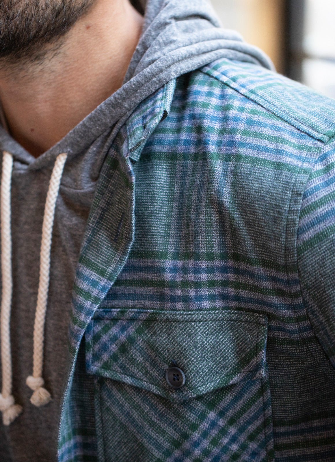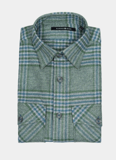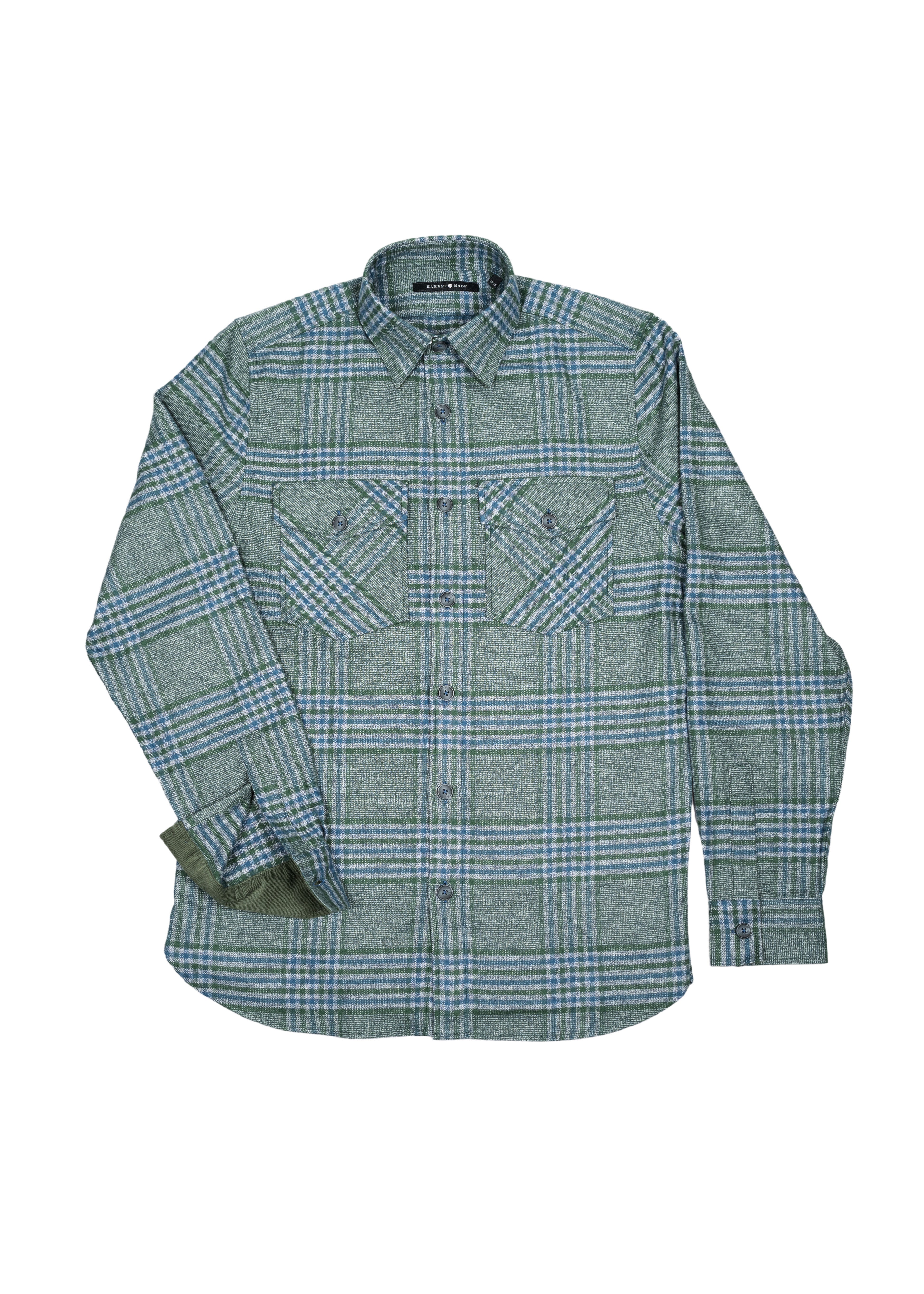 The Zimmerman double pocket flannel offers a heavier weight fabric for added warmth and durability. The green corduroy contrast fabric adds a touch of style to this practical and comfortable flannel shirt. Perfect for outdoor adventures or casual days, you'll love the versatile benefits of this expertly crafted piece.