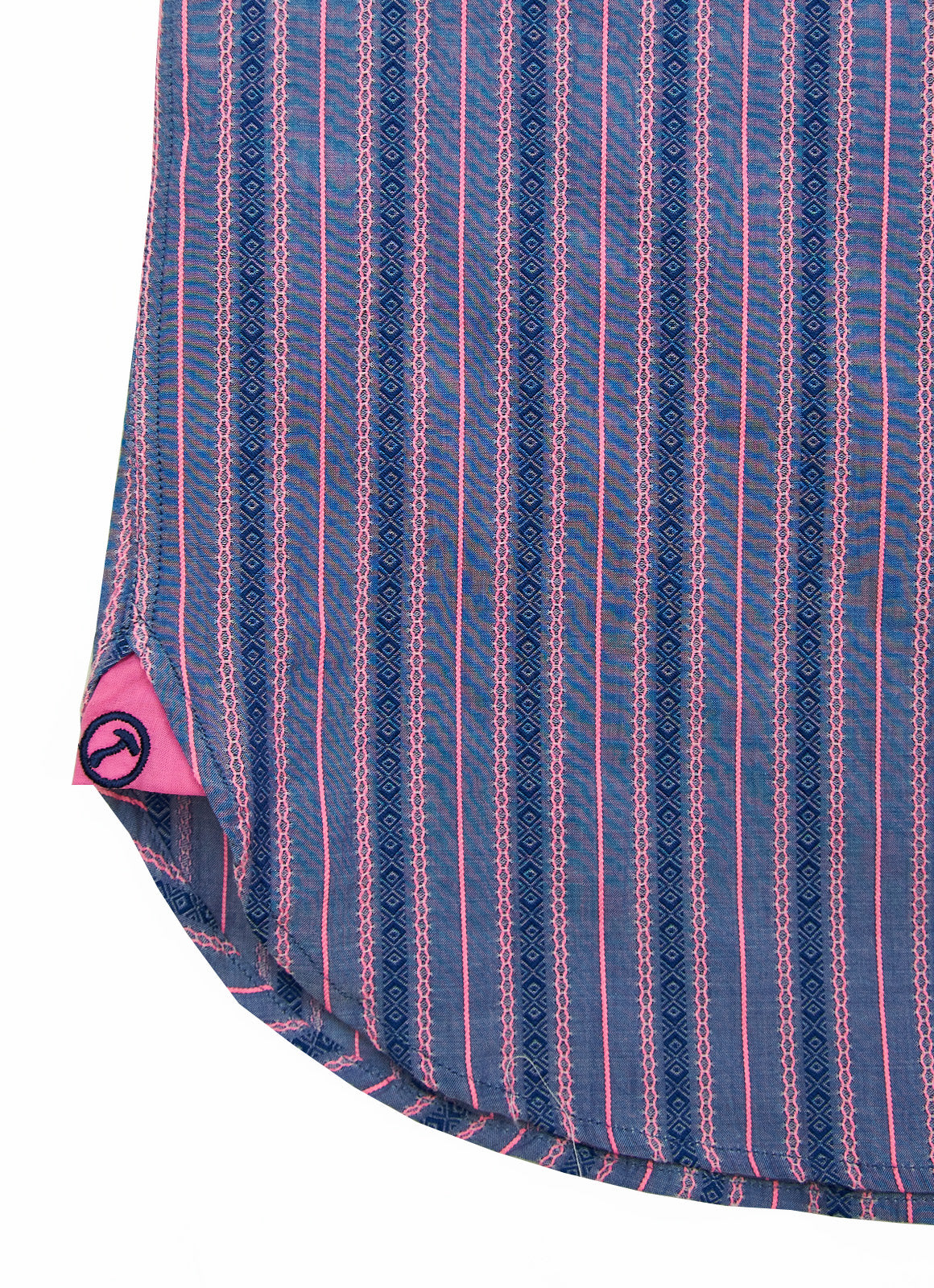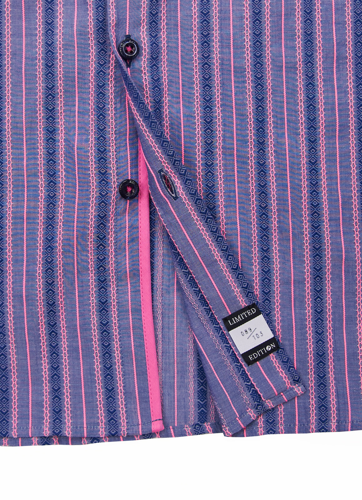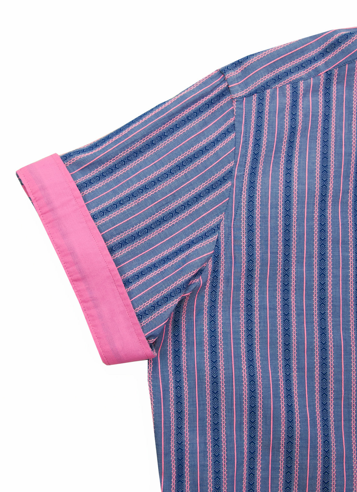 The Delhi features a striking stripe pattern in vibrant purple and pink hues.Made from soft cotton featuring a textured surface and slight elasticity, this fabric delivers a balanced combination of comfort and sophistication.