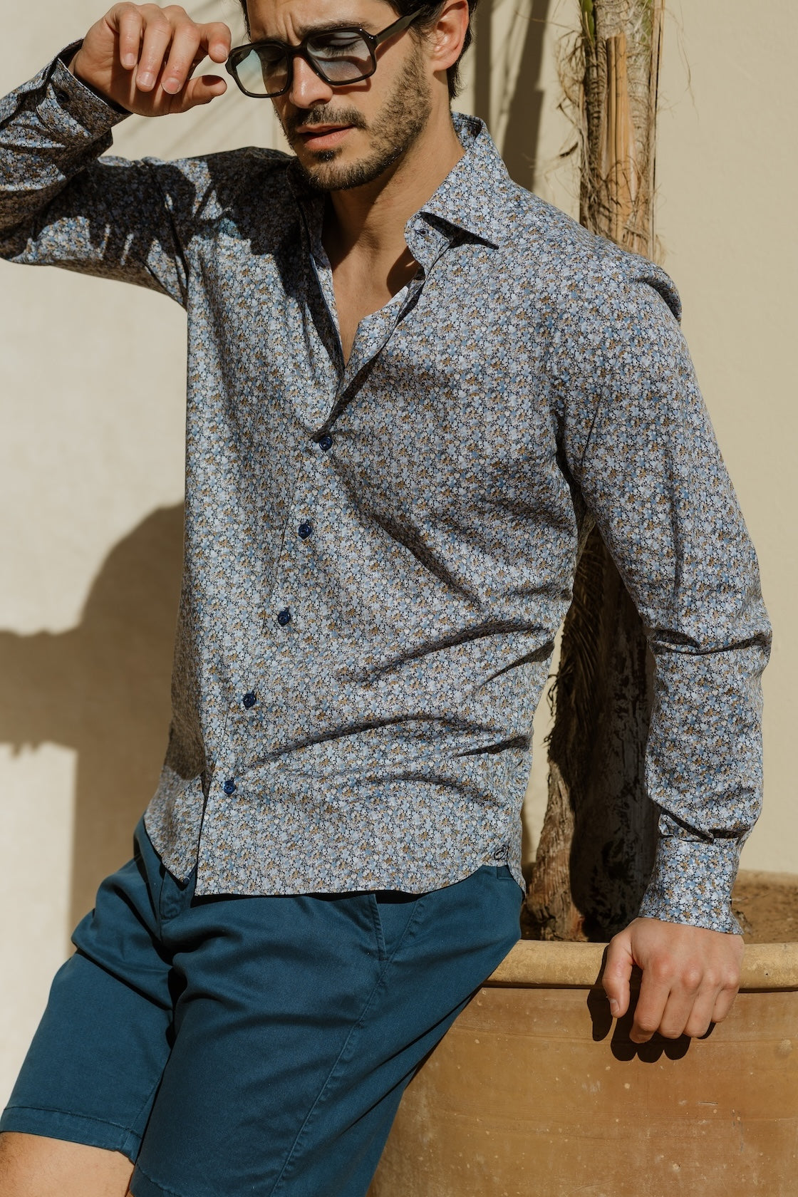 Introducing Fosston, the ultimate statement piece for your wardrobe. With its long sleeves and button up design, this blue floral shirt will elevate any outfit. Embrace your sense of style with this unique and playful addition. You'll be turning heads in Fosston!