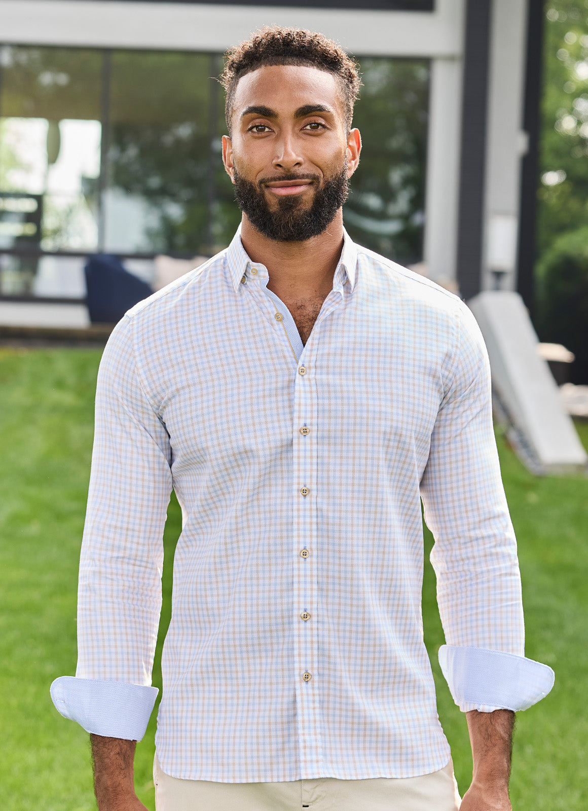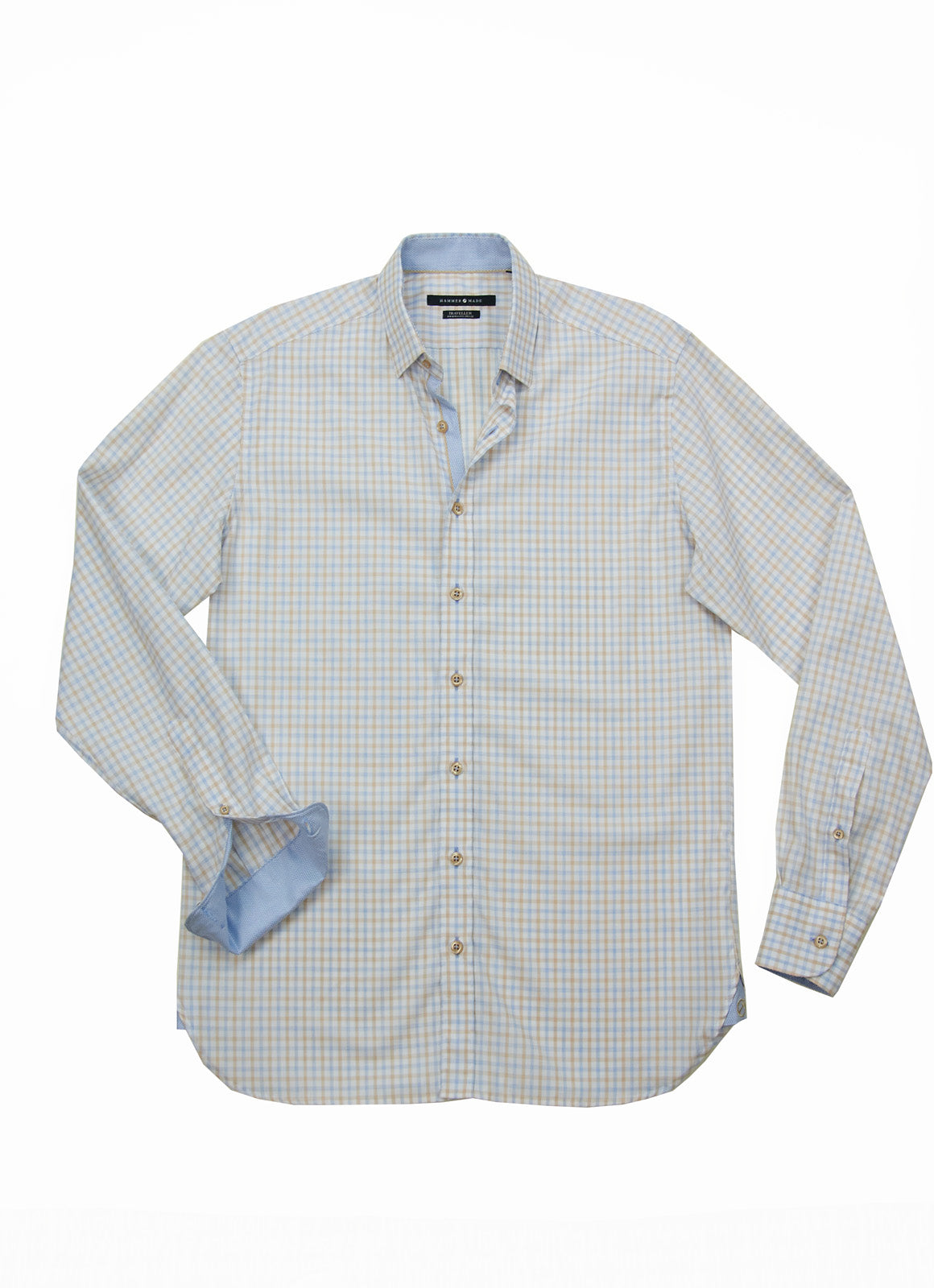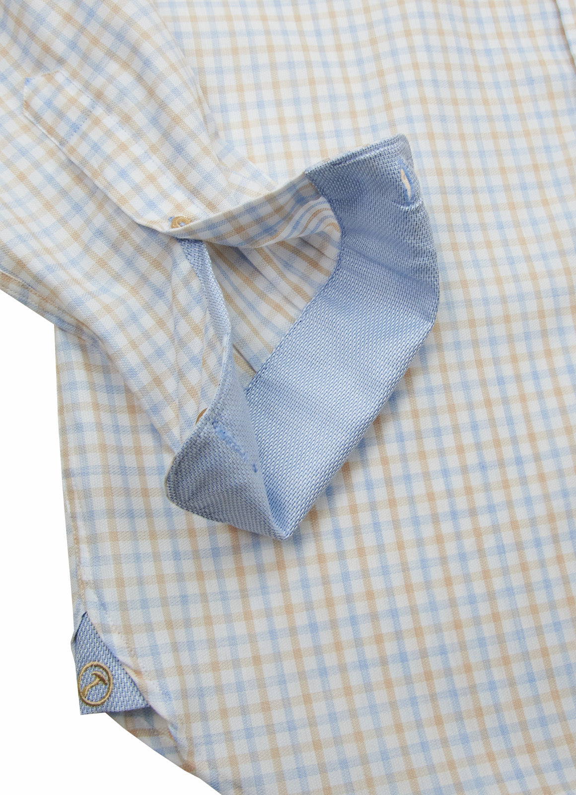 The Randall button up shirt boasts a blue gingham pattern, with soft blue contrast fabric. Perfect for a sophisticated and stylish look, this shirt is a must-have for any wardrobe. Made with high-quality materials and expert craftsmanship, it is sure to make a statement.