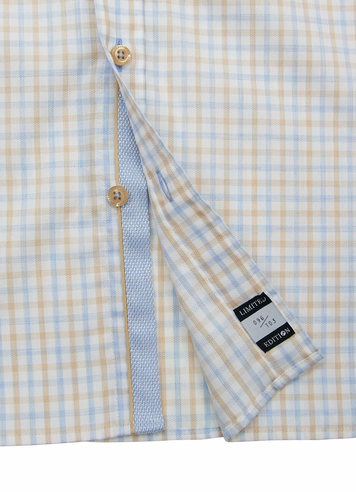 - Trim detail on front placket, inside full collar & cuff and inside sleeve placket