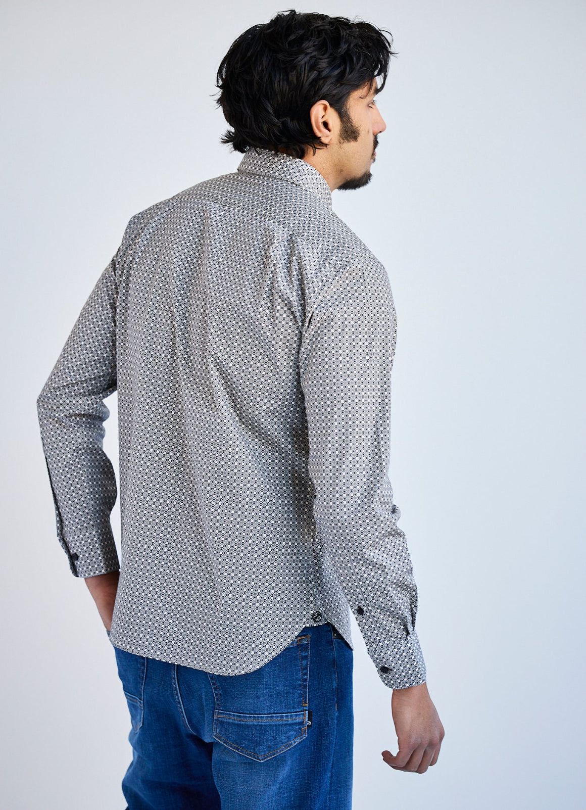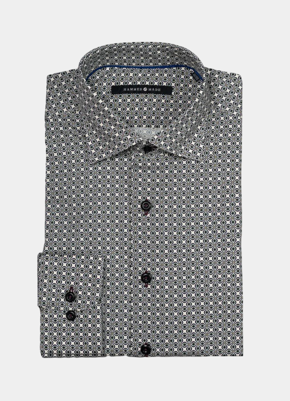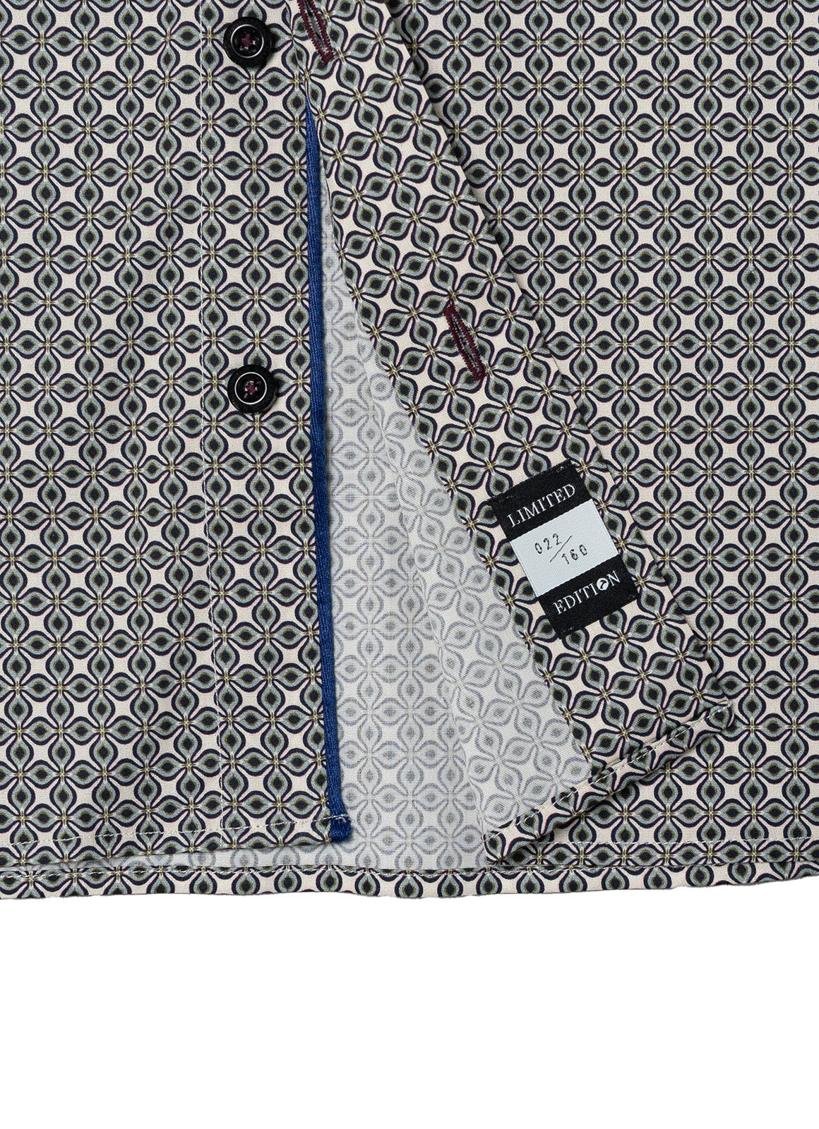 Discover the Schmetail, a European-crafted cotton shirt that combines timeless style with meticulous attention to detail. The sophisticated geometric pattern with blue piping detail around the collar and down the placket offers versatile elegance. With a comfortable give to the fabric, the Schmetail provides exceptional ease and unrestricted movement without compromising its polished aesthetic. Elevate your wardrobe with a shirt that balances classic design with distinctive European quality.