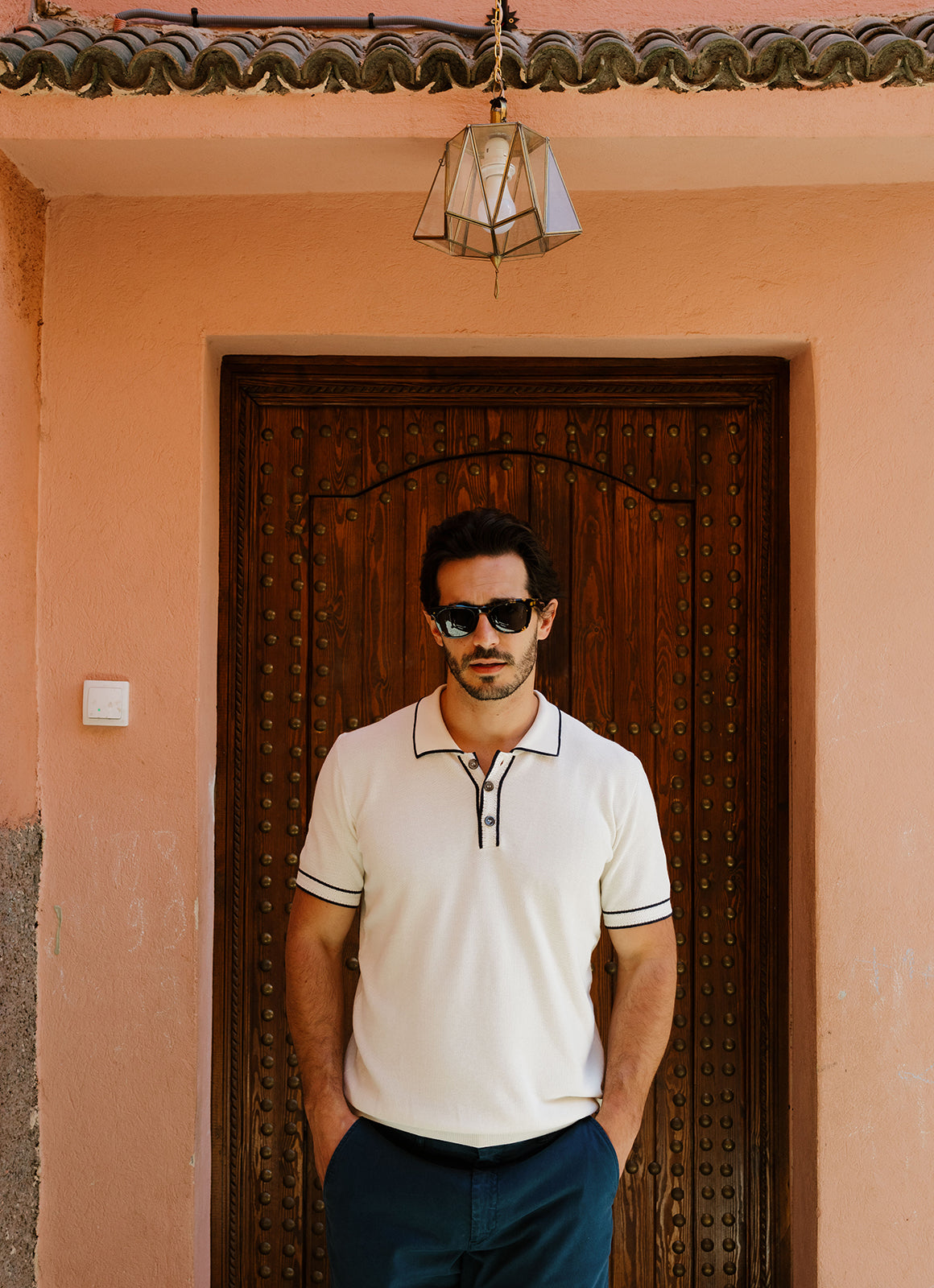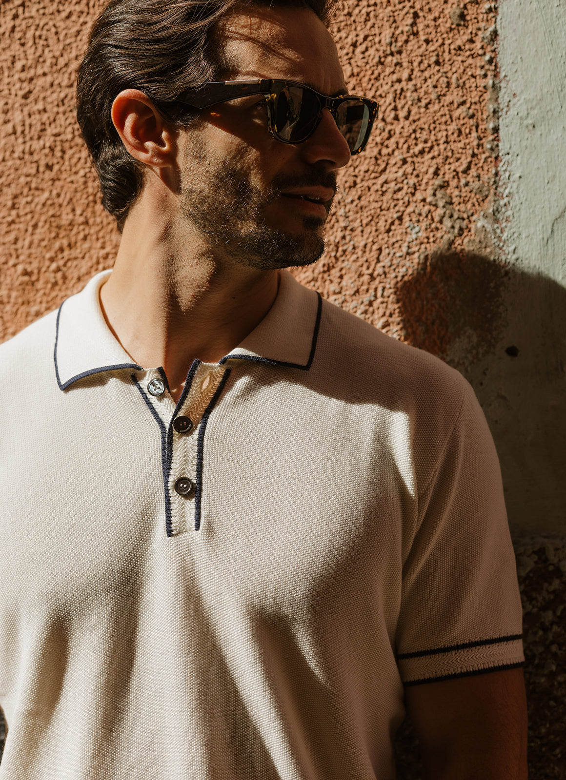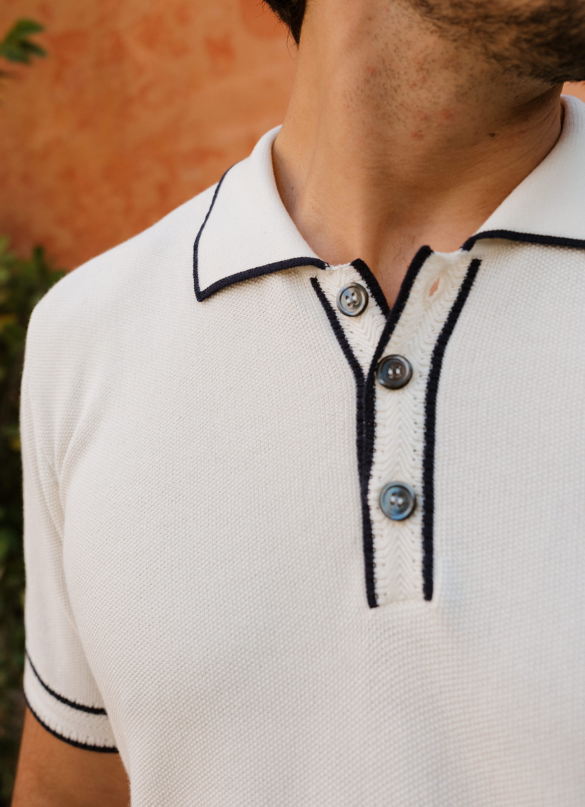Introducing the Chester Knit Polo - a sophisticated blend of light weight knit and sleek navy detailing. Elevate your wardrobe with this tasteful piece, perfect for a day at the office or a night out on the town. A must-have for the discerning individual.