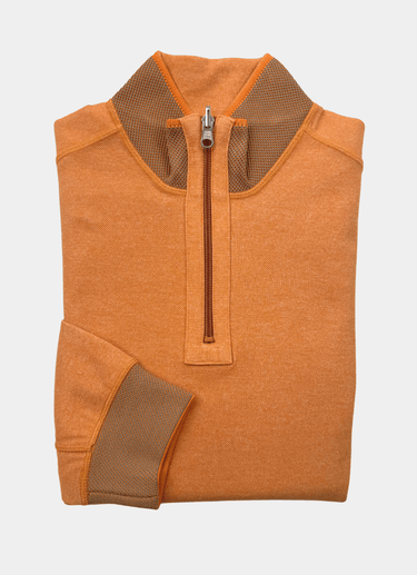 The Onamia Reversible Quarter Zip is crafted from premium European cotton, delivering a soft hand with a structured, elevated finish. Thoughtful details, contrast knit bands at the cuffs and hem, a refined zip collar, and a subtle logo on the inner and outer yoke add depth to its clean silhouette. The reversible design offers two distinct looks in one versatile piece, doubling your styling possibilities. Designed to layer seamlessly over a dress shirt, it moves effortlessly from the office to evening.