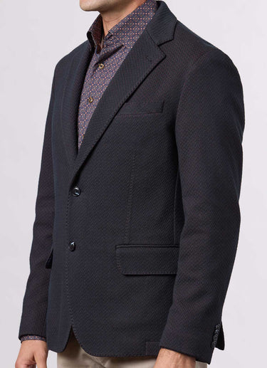 Introducing the Dalton Sport Coat, crafted from luxurious Italian fabric. With a maroon base and navy textured thread, this coat boasts a unique design that is both stylish and versatile. Elevate your wardrobe and make a statement with this sleek and sophisticated sport coat.