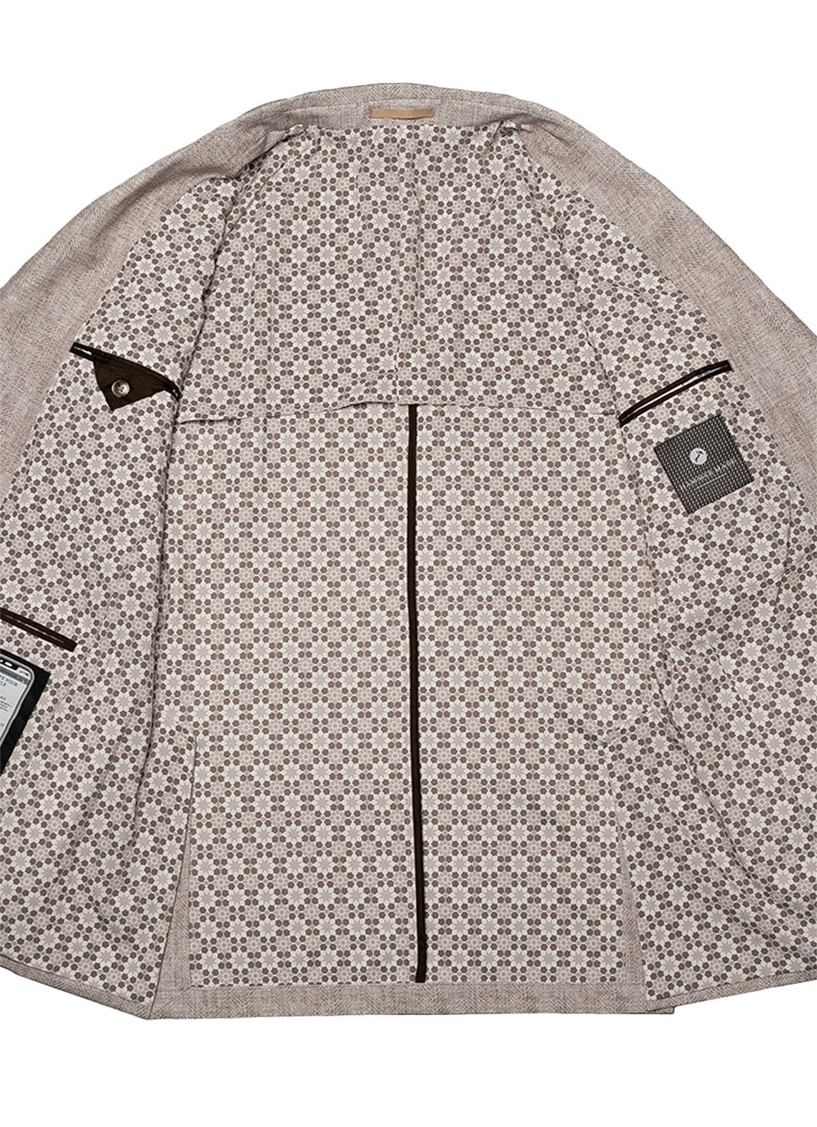 • Flap pockets on exterior; single welt chest pocket for pocket square