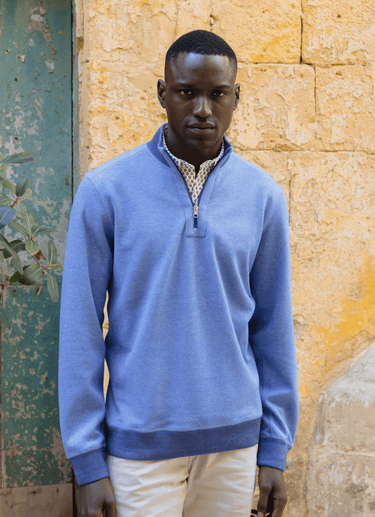 The Onamia Reversible Quarter Zip is crafted from premium European cotton, delivering a soft hand with a structured, elevated finish. Thoughtful details, contrast knit bands at the cuffs and hem, a refined zip collar, and a subtle logo on the inner and outer yoke add depth to its clean silhouette. The reversible design offers two distinct looks in one versatile piece, doubling your styling possibilities. Designed to layer seamlessly over a dress shirt, it moves effortlessly from the office to evening.