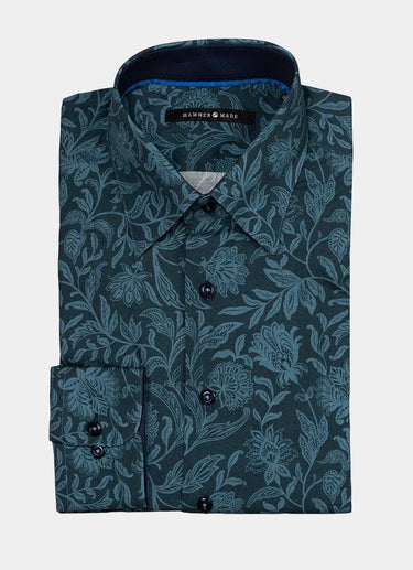 The Sauk showcases a captivating floral pattern in tones of navy and teal with blue piping detail around the collar and down the placket which creates a polished look that transitions seamlessly from professional settings to casual outings. Crafted from premium European cotton that feels as luxurious as it looks and a comfortable give to the fabric, the Sauk provides exceptional ease and unrestricted movement without compromising its polished aesthetic. Elevate your wardrobe with a shirt that balances classic design with distinctive European quality.