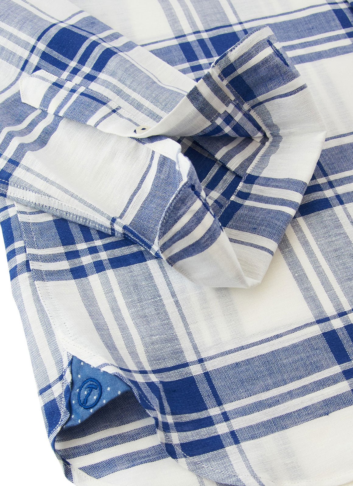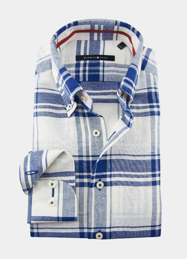 The Carlo is made from premium European fabric and showcases a blue plaid pattern with red piping details. You can trust in this piece, as it blends excellent craftsmanship with classic, lasting style.