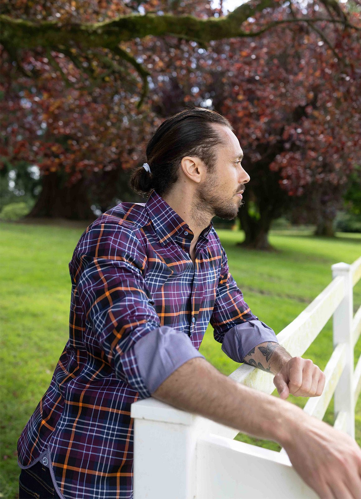 Add a cozy touch to your fall wardrobe with the Dunn, crafted from premium European fabric in rich plum tones and classic plaid. Layer it seamlessly under the Motley Full Zip jacket, for style without the bulk. Perfect for crisp days, this piece keeps you comfortable while showcasing an elegant seasonal palette.
