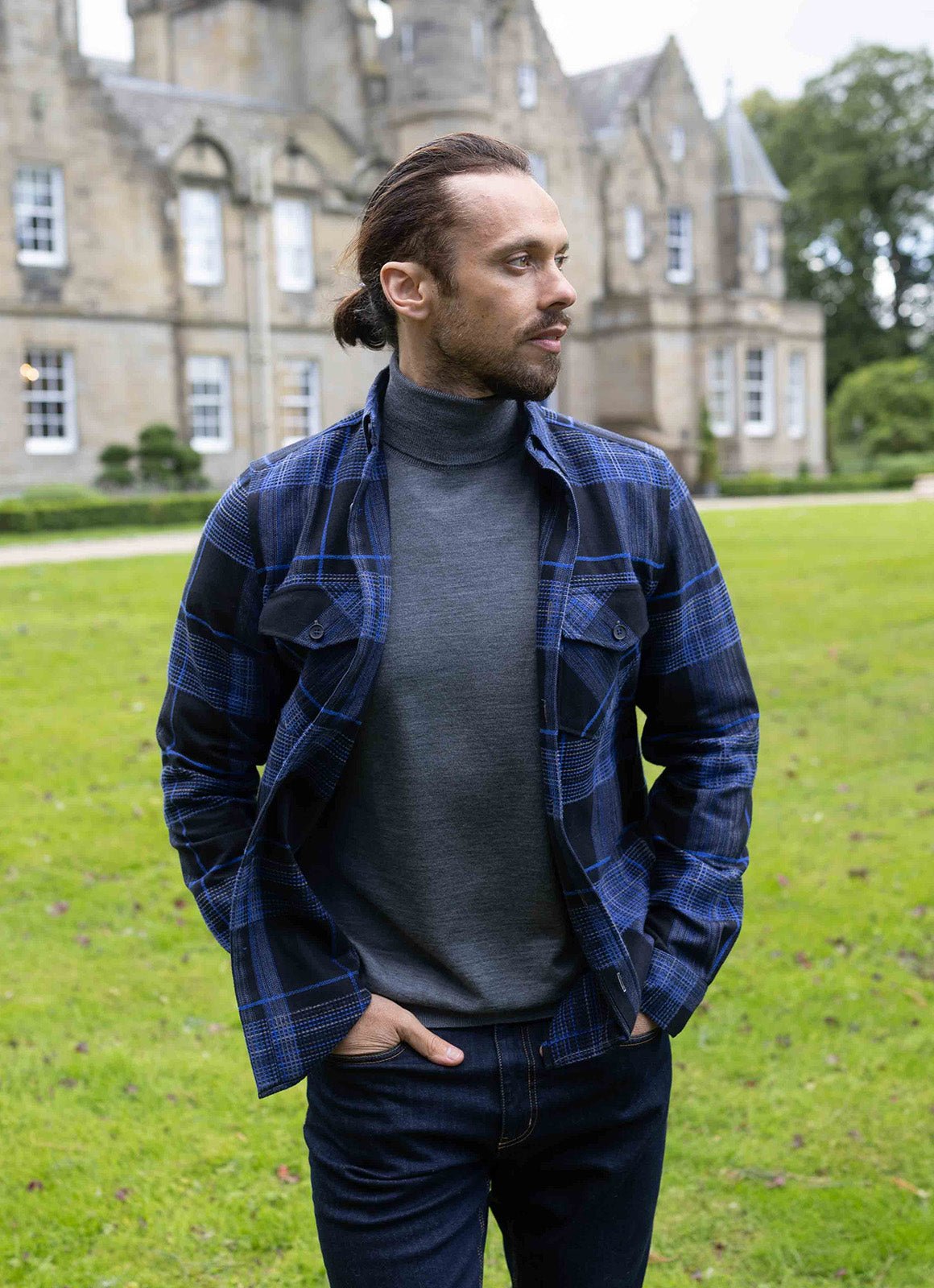 We make our sleeves slightly longer to showcase cuff detail — sleeves can be shortened by a tailor, but not lengthened.