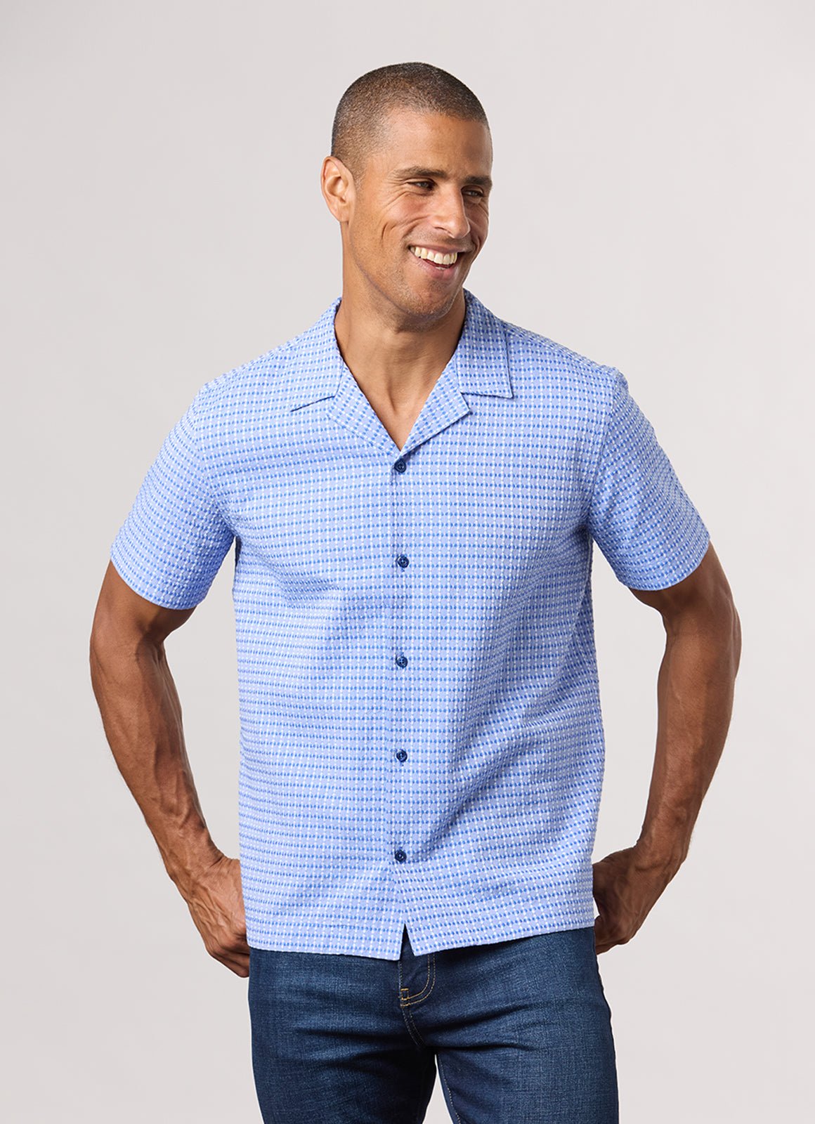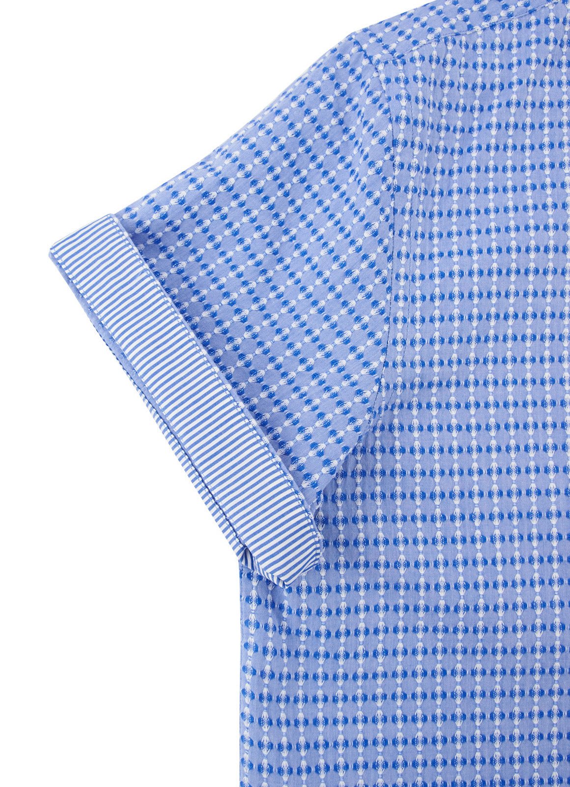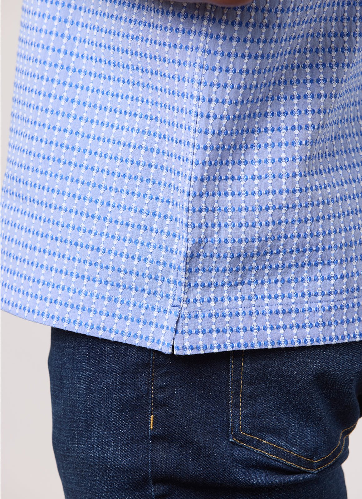 Unleash your carefree island vibes with Kauai, the go-to button down for any occasion. The blue textured fabric adds a touch of casual-chic, while the blue stripe contrast detailing keeps things playful. (Pun intended!) Embrace the ultimate balance of style and comfort with Kauai.