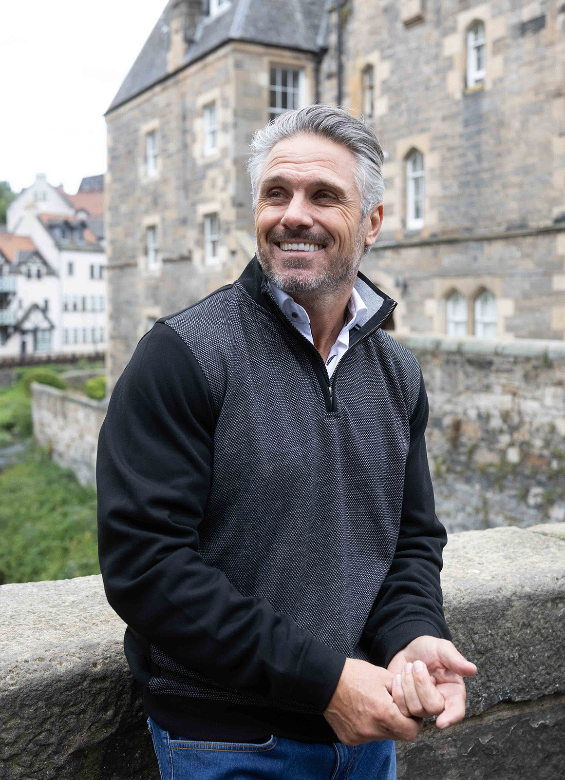 We make our sleeves slightly longer to showcase cuff detail — sleeves can be shortened by a tailor, but not lengthened.