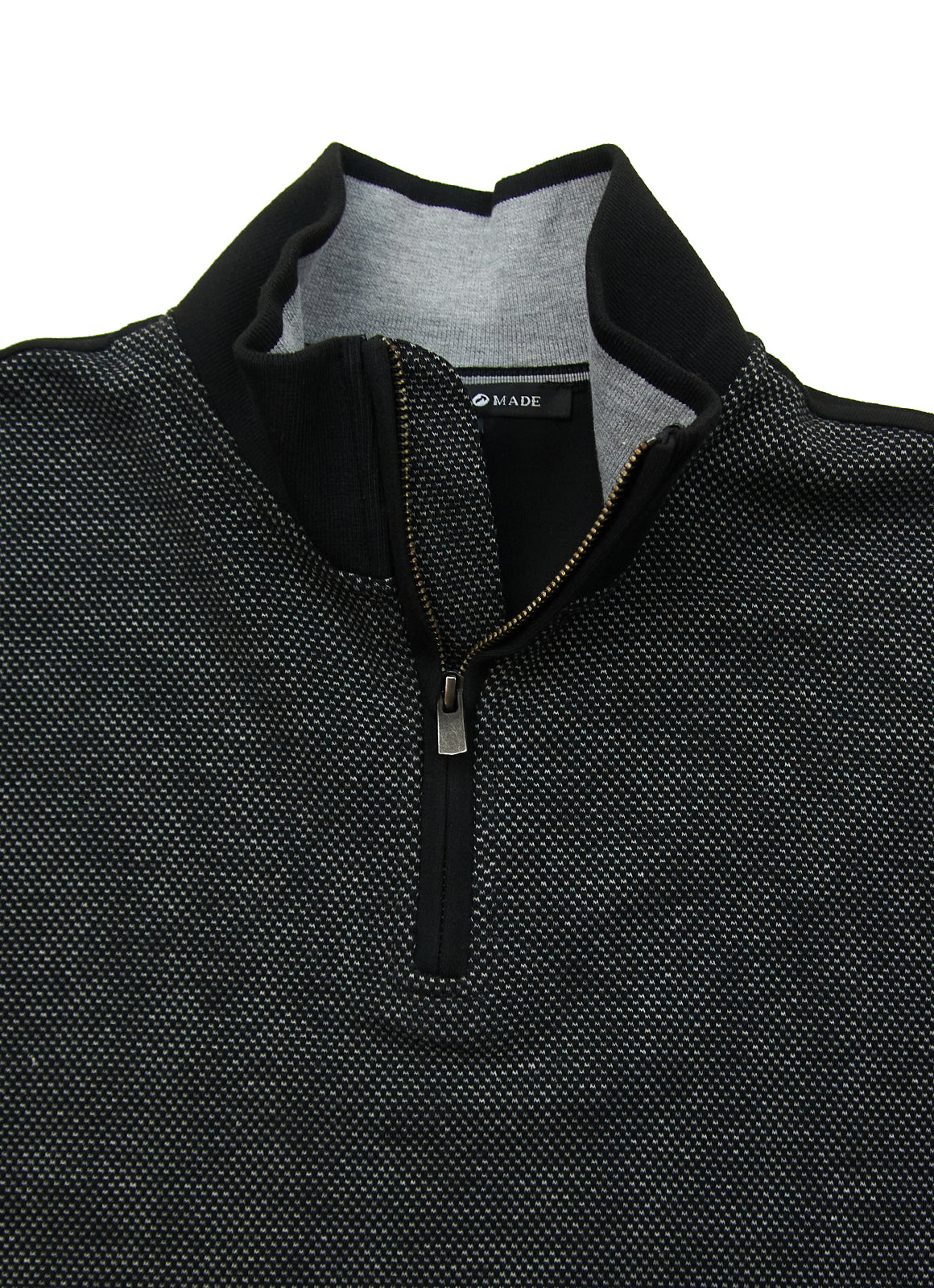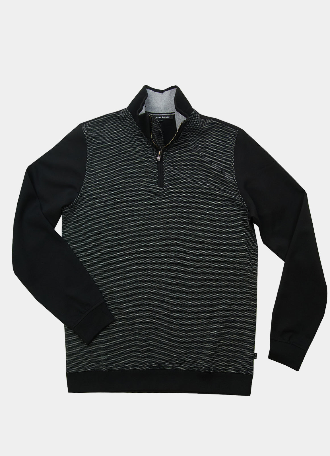 Experience comfort and style with the Lindstrom quarter zip pullover. Crafted with a textured front and contrast fabric inside the collar, this navy pullover is the perfect addition to your wardrobe. A classic yet modern piece for any occasion.