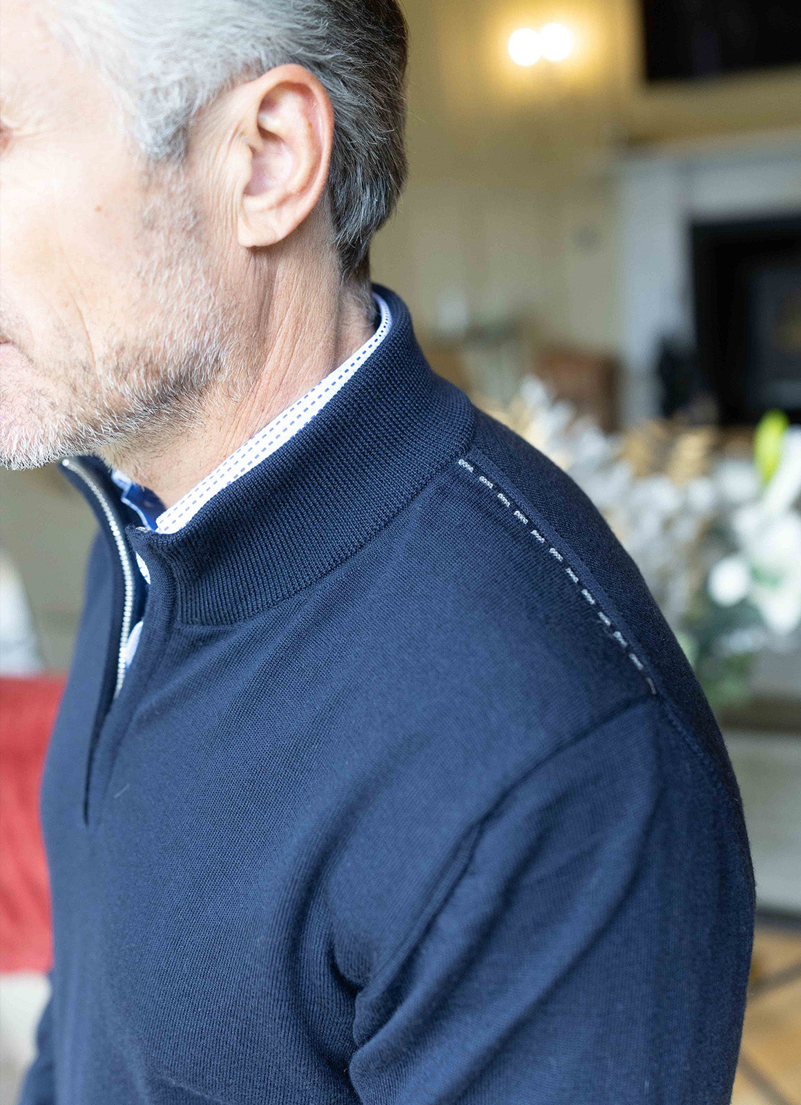 We make our sleeves slightly longer to showcase cuff detail — sleeves can be shortened by a tailor, but not lengthened.
