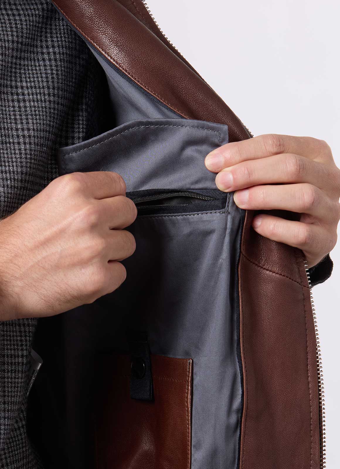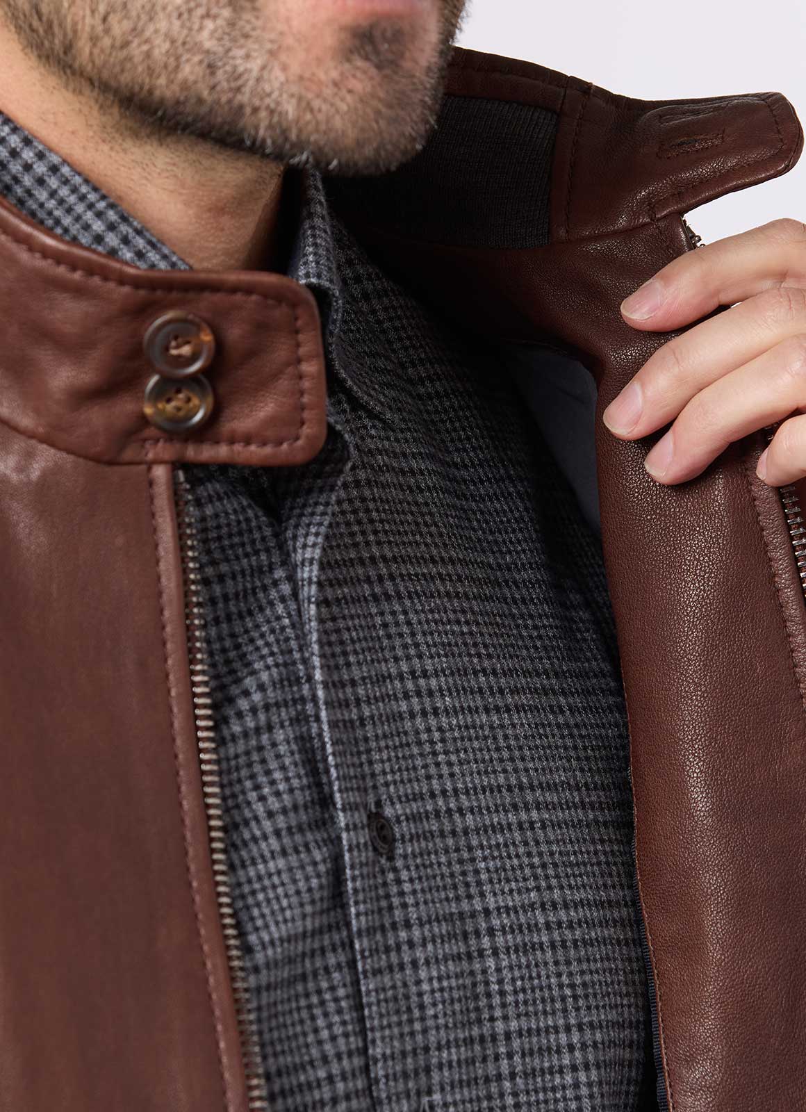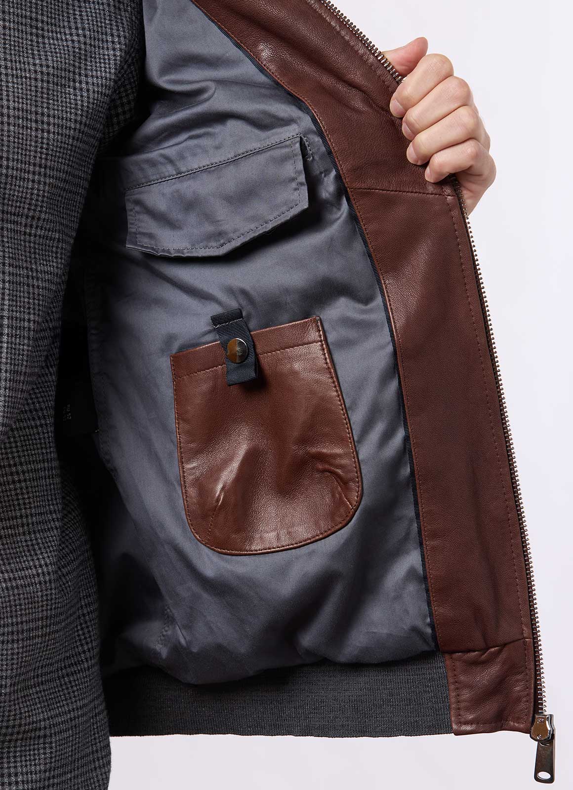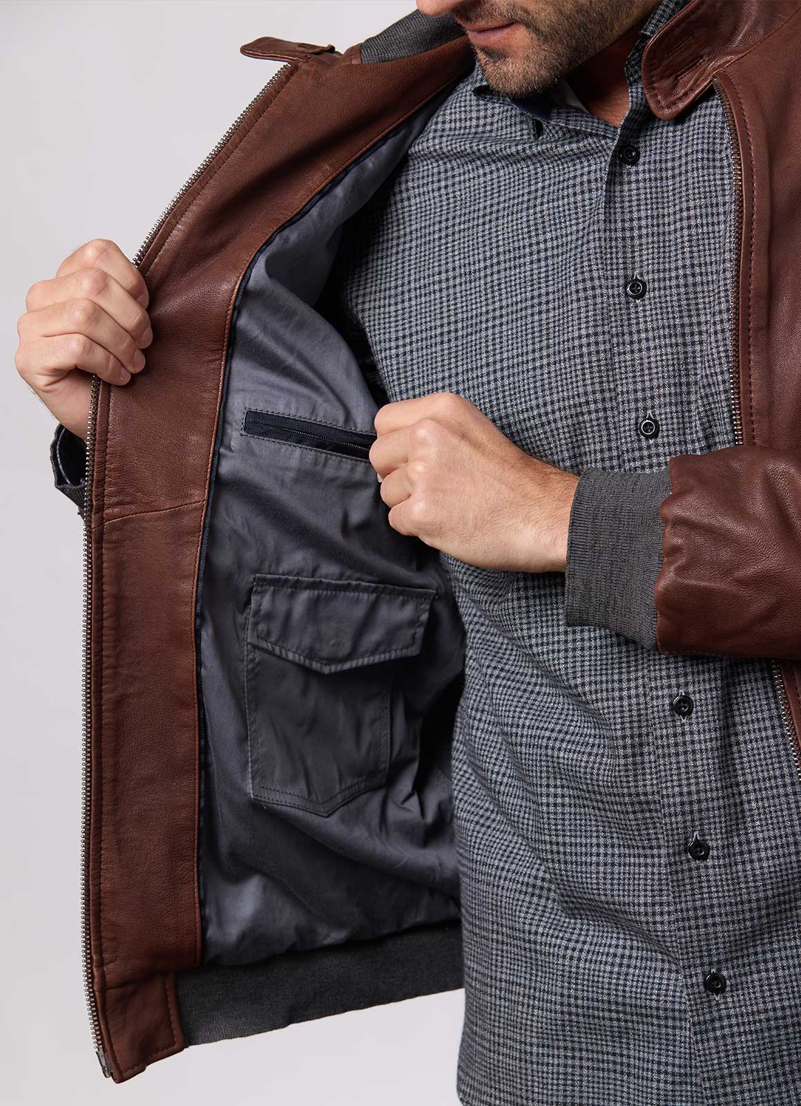 Professional and timeless, the Redby Leather Bomber Jacket is made with 100% genuine lamb for a luxuriously soft and durable feel. The rich brown leather, paired with a grey lining and ribbed cuffs and trim, adds a touch of sophistication to any outfit. A versatile and long-lasting addition to your wardrobe.