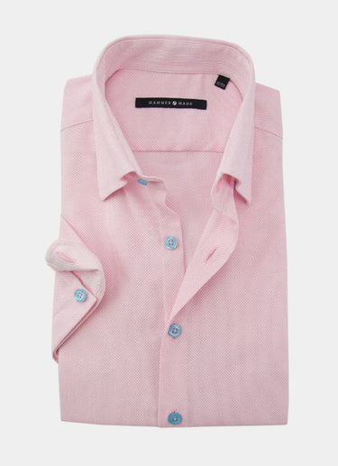 Unleash your playful side with Rhodes, the perfect blend of airy pink cotton mesh and light blue buttons. With a touch of pink stripe seersucker contrast fabric, this button down has a quirky and fun flair. Keep your style easy and breezy with Rhodes!