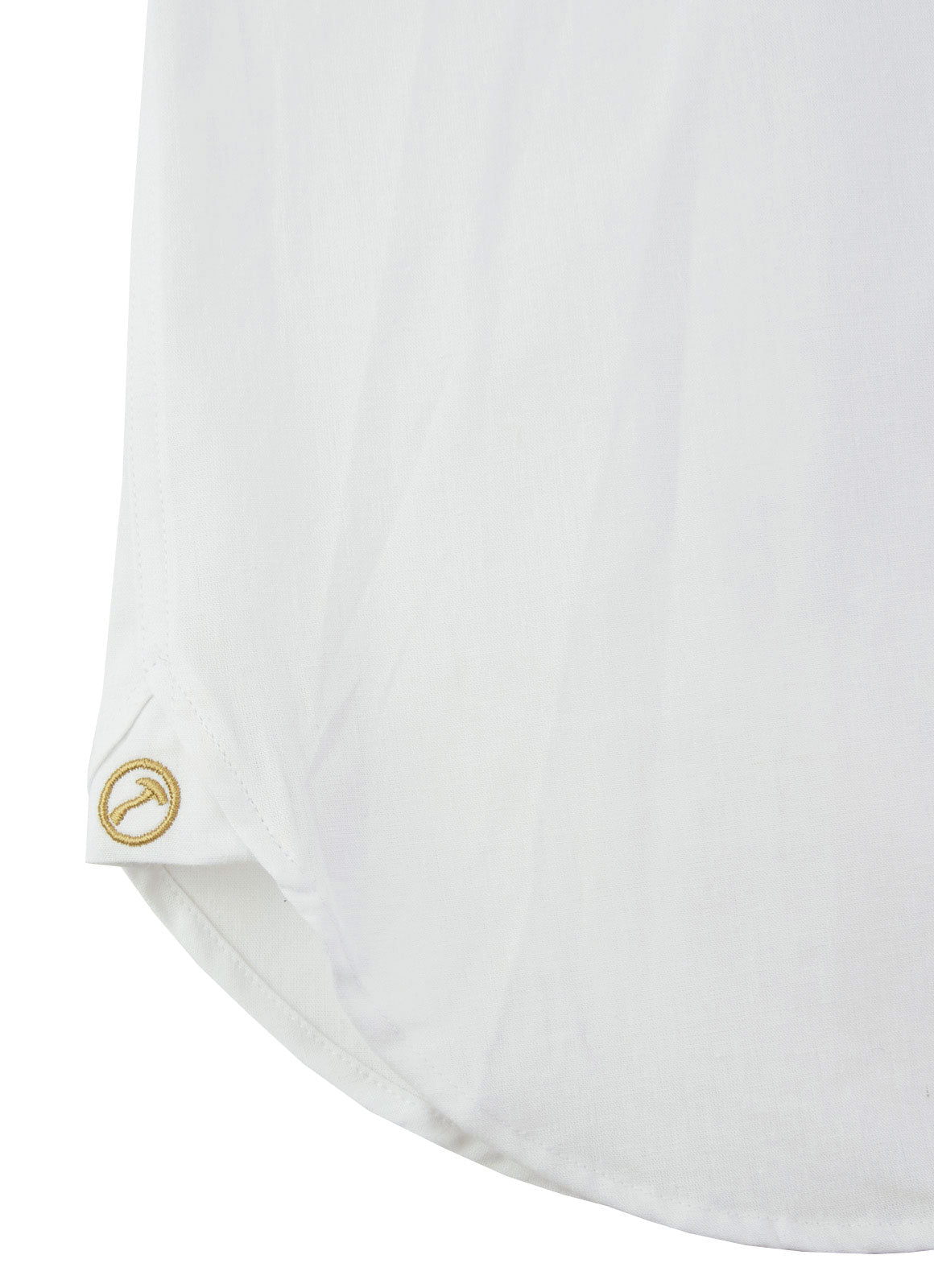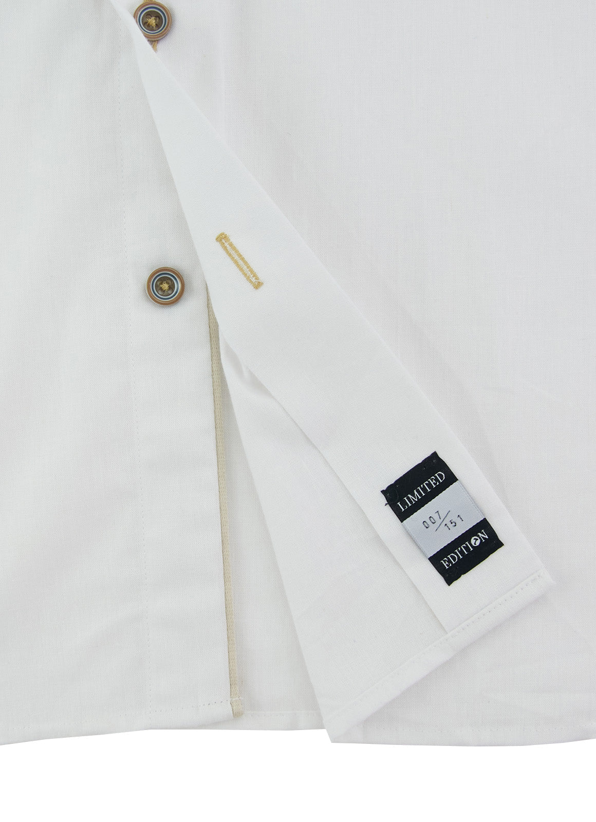 The Strand button down combines a classic white linen fabric with a refined tan trim and tonal swirl buttons. Expertly crafted for a polished look, this shirt offers effortless style and versatility for any occasion. Elevate your wardrobe with the Strand.
