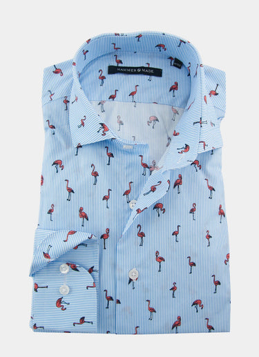 The Vergas is made from premium European fabric and showcases a fun flamingo print on a blue pinstripe pattern. You can trust in this piece, as it blends excellent craftsmanship with classic, lasting style.