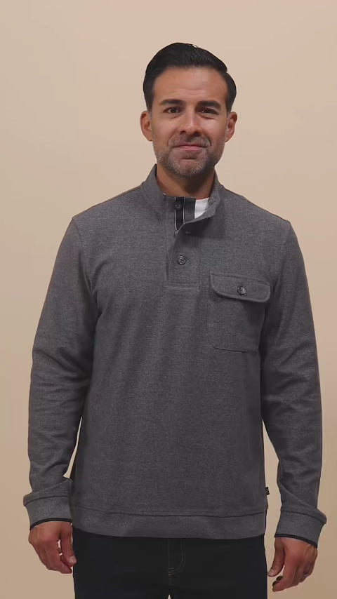 The Wabana Pullover provides a comfortable and stylish choice ideal for casual or elevated layering. It includes a button pocket on the left chest, a three-button collar, and understated accent details on the placket. With an elastic waistband and arm cuffs, it delivers a secure, tailored fit.